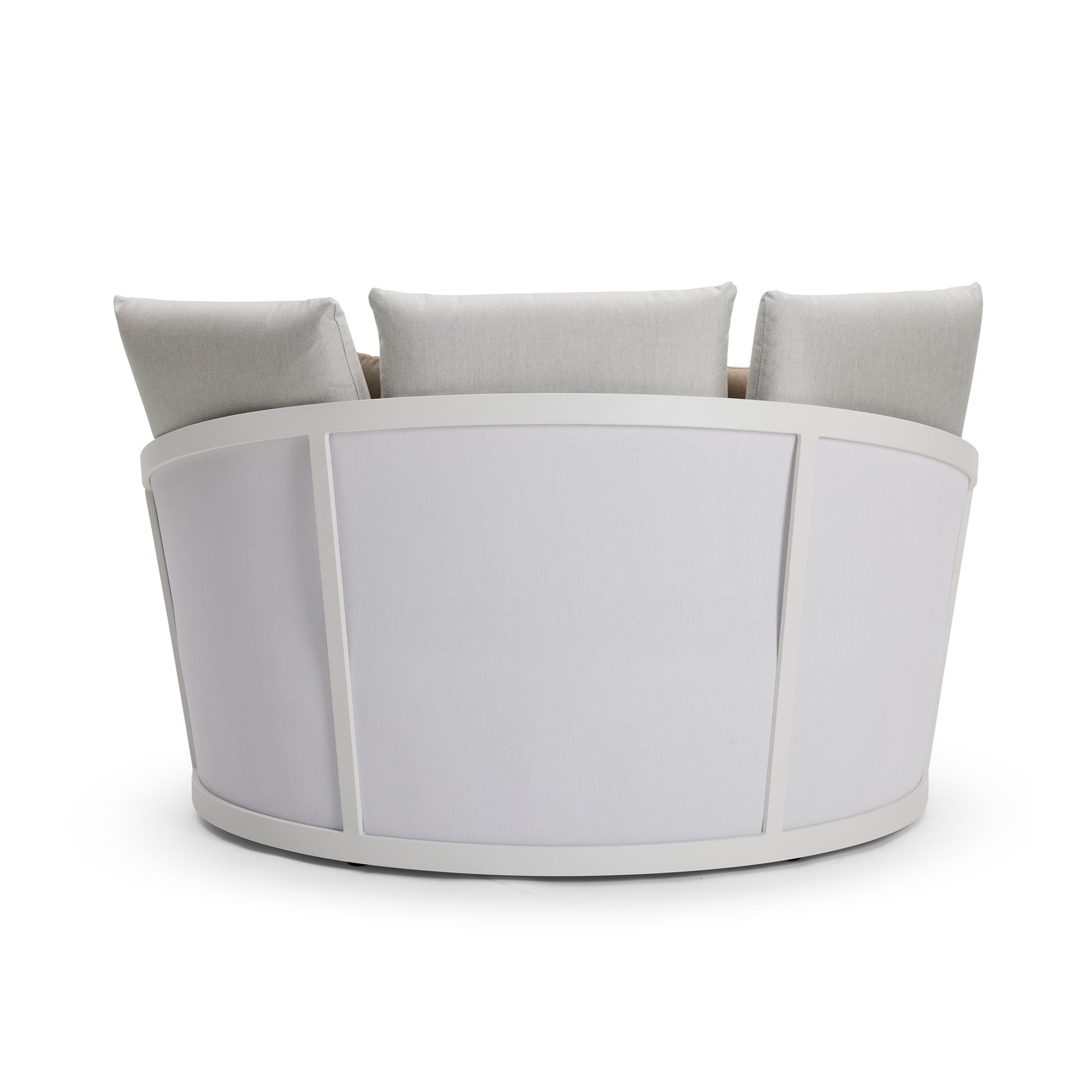Daybed con cuscini Cielo è un magnifico divano per esterni con struttura robusta in alluminio di alta qualità, in grado di rappresentare l'incarnazione perfetta del relax all'aperto. Il daybed Cielo è disponibile in due splendide colorazioni, e completerà la tua oasi di bellezza grazie al suo design accattivante e lussuoso, garantendo durabilità nel tempo e facile manutenzione. La parte posteriore di questo Daybed è realizzata in tessuto Batyline di altissima qualità, resistente anche ai raggi UV. I cuscini morbidissimi sono rivestiti in tessuti che resistono ai vari agenti atmosferici, sole e umidità, ideali per l'uso esterno. Questo divano outdoor è perfetto per qualsiasi spazio esterno, dal giardino alla terrazza, regalando un angolo di stile e comfort alla tua casa. Il Daybed con cuscini Cielo ha delle linee piacevoli e pulite, e una configurazione che invita a distendersi e a godere della tranquillità dell'ambiente circostante. Questo Daybed non è solo un pezzo di mobiliare, ma una vera e propria oasi di benessere che trasforma qualsiasi angolo esterno della tua casa in un rifugio accogliente e stiloso.