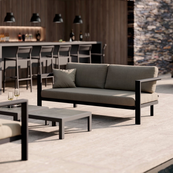 Divano Cubic, con cuscini integrati, è un meraviglioso capolavoro realizzato da Diphano con struttura robusta in alluminio e cuscini rivestiti in tessuto di alta qualità capaci di resistere ai vari agenti atmosferici, dal sole caldo, alla pioggia incessante. Cubic è personalizzabile in sei diverse colorazioni, e grazie a questo è versatile e abbinabile a qualsiasi stile della tua casa. Il divano Cubic outdoor si distingue per il suo design minimalista e moderno, che lo rende una scelta ottima per chi cerca di aggiungere un po' di eleganza contemporanea al proprio spazio esterno o interno. Caratteristica importante del divano Cubic è il fissaggio con velcro; in questo modo i cuscini si mantengono in posizione, ma allo stesso tempo sono facilmente removibili per favorire la manutenzione e la pulizia del divano. Inoltre, la sua versatilità permette di posizionarlo sia in ambienti esterni come un terrazzo o un giardino, che in ambienti interni come una sala da pranzo o un salotto, grazie ai suoi materiali di alta qualità che possono resistere ai cambiamenti climatici. Oltre al design e alle varie funzionalità, Cubic è all'insegna della sostenibilità dell'ambiente, con materiali ecocompatibili che rispettano la natura senza togliere nulla all'aspetto estetico. Scegli anche tu il divano Cubic con cuscini integrati e non ti pentirai.