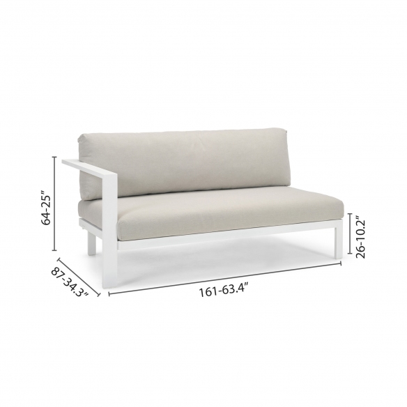 Dimensioni: Lunghezza 161 cm, Profondità 87 cm, Altezza 64 cm, Altezza sedile 26 cm