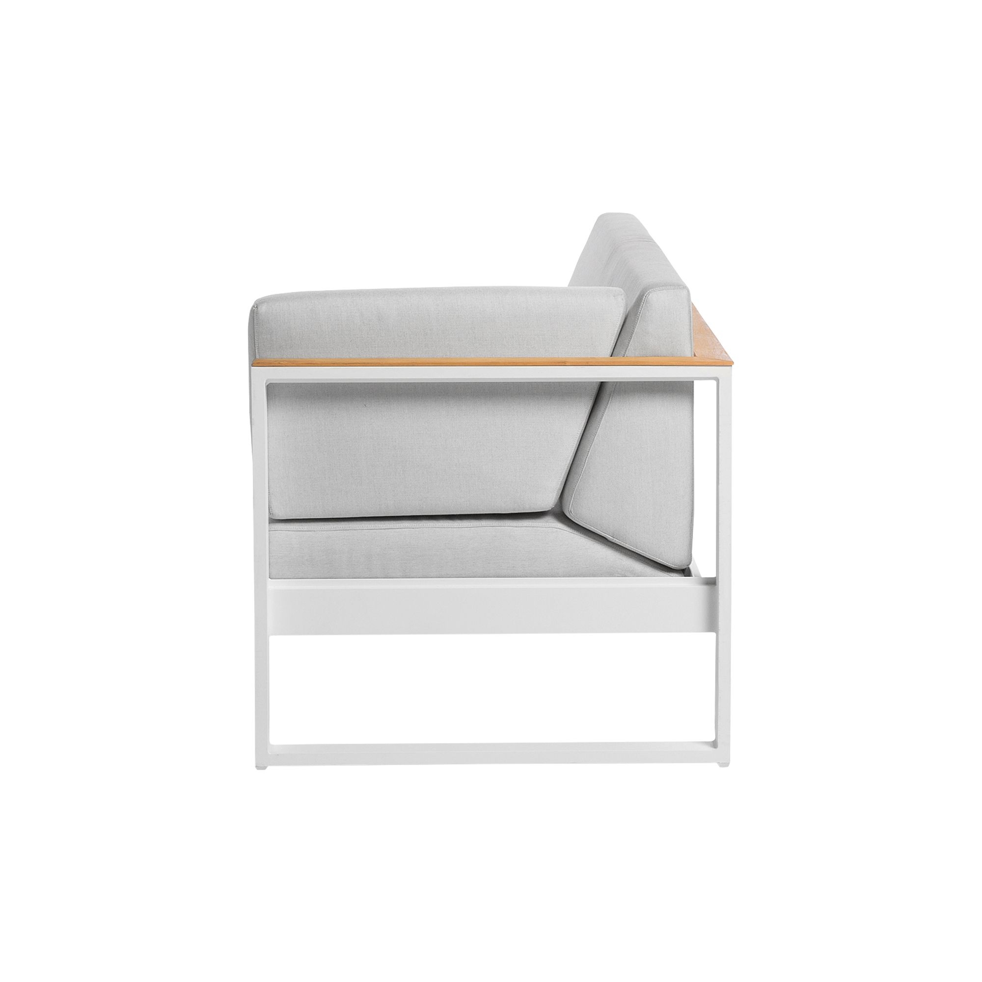 La seduta 2 posti sinistra Landscape Teak, con cuscini integrati, è stato realizzata con un'attenzione meticolosa ai dettagli e combina la robustezza della struttura in alluminio all'estetica calda del legno Teak che promette resistenza ai vari cambiamenti climatici, perfetto per l'uso esterno. Disponibile in due diverse meravigliose combinazioni, la seduta Landscape Teak è un'equilibrio perfetto tra eleganza naturale e comfort, perfetto per chi cerca di arricchire i propri spazi con un tocco di eleganza senza fine. Landscape Teak offre delle linee contemporanee che lo rendono unico e raffinato, abbinabile a qualsiasi stile, dallo stile moderno a quello tradizionale. Grazie ai cuscini realizzati con tessuto morbido e soffice, questo divano è ideale per pomeriggi in famiglia e tra amici. Landscape Teak ha una lunghezza di 150 centimetri, perfetta per accogliere due persone, promuovendo momenti di relax e convivialità all'aria aperta con la propria anima gemella. Il suo design versatile lo rende adatto a qualsiasi contesto, dalla terrazza vista mare, al giardino con piscina, fino al soggiorno moderno, dove il legno Teak aggiunge un elemento di naturalezza e serenità. Scegliere la seduta 2 posti sinistra Landscape Teak significa optare per una soluzione all'insegna del benessere e dello stile.