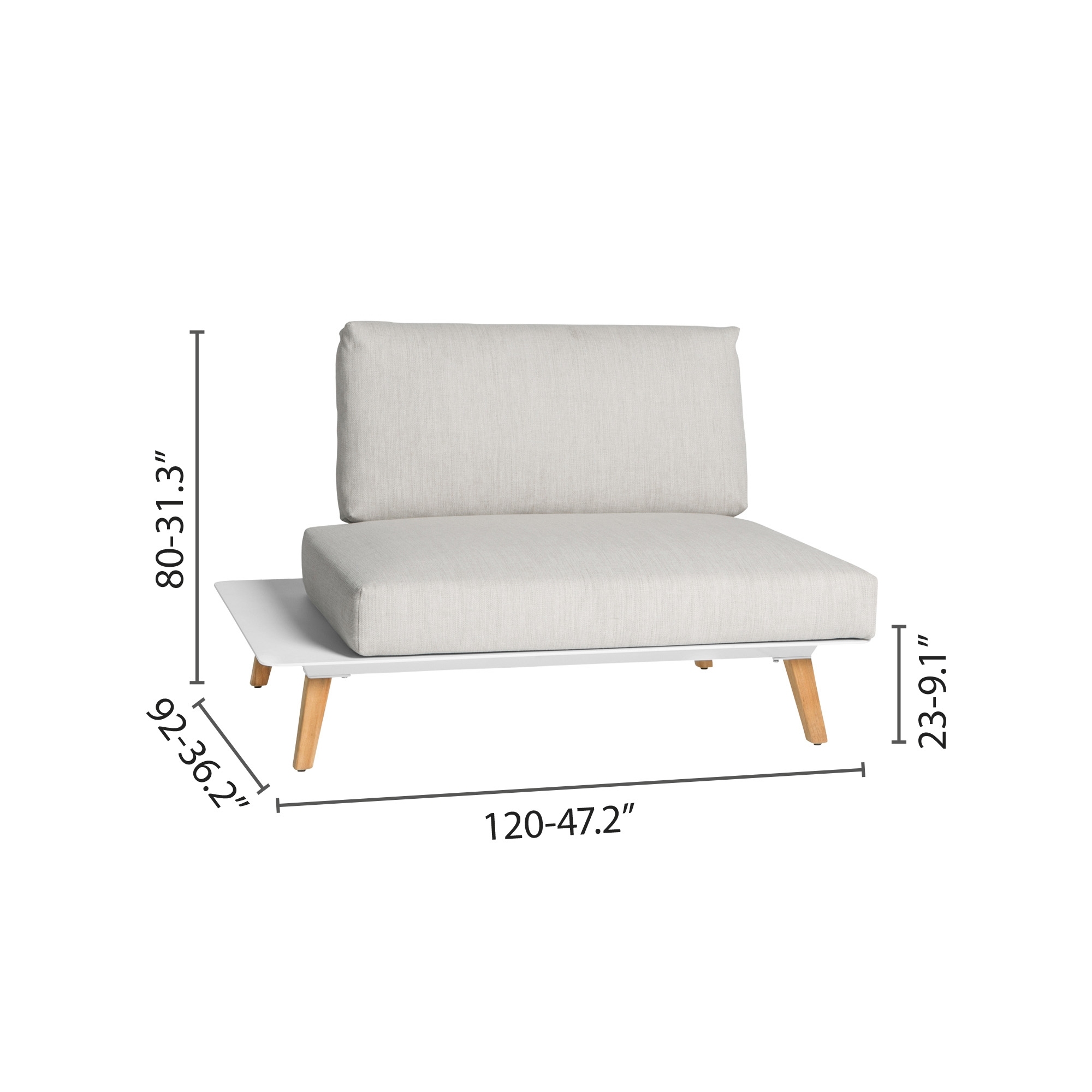 Seduta finale destra Link 02, 120 cm, con cuscini inclusi, è stata realizzata con materiali di altissima qualità: ha una struttura resistente in alluminio che garantisce stabilità e robustezza, il legno Teak delicatissimo che promette resistenza ai vari agenti atmpsferici e il tessuto imbottito che regala morbidezza e comfort di massimo livello. Questa seduta finale destra outdoor è una scelta ideale per chi vuole unire qualità e raffinatezza. La seduta finale Link 02 ha i cuscini inclusi, morbidissime nuvole realizzate con tessuto di alta qualità, facilmente removibili per il lavaggio grazie al fissaggio in velcro, che promettono un'accoglienza irresistibile per chiunque voglia rilassarsi. Link 02 seduta finale destra è perfetta per sfruttare al meglio gli spazi della casa, specialmente gli ambienti più grandi open space, offrendo una soluzione di arredo elegante e sofisticata. Link 02 arricchisce ogni tipo di ambiente col suo stile impeccabile e confortevole, che si tratti di una veranda o di un salotto. Il suo design caratterizzato da linee pulite e moderne si adatta perfettamente a diversi stili di decorazione, dai più tradizionali a quelli più contemporanei. La scelta di questa seduta finale Link 02 è un investimento esteticamente raffinato ed estremamente funzionale.