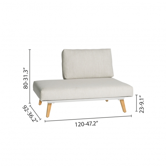 Seduta finale destra Link 03, 120 cm, con cuscini inclusi, è stata realizzata con materiali di altissima qualità: ha una struttura resistente in alluminio che garantisce stabilità e robustezza, il legno Teak delicatissimo che promette resistenza ai vari agenti atmpsferici e il tessuto imbottito che regala morbidezza e comfort di massimo livello. Questa seduta finale destra outdoor è una scelta ideale per chi vuole unire qualità e raffinatezza. La seduta finale Link 03 ha i cuscini inclusi, morbidissime nuvole realizzate con tessuto di alta qualità, facilmente removibili per il lavaggio grazie al fissaggio in velcro, che promettono un'accoglienza irresistibile per chiunque voglia rilassarsi. Link 03 seduta finale destra è perfetta per sfruttare al meglio gli spazi della casa, specialmente gli ambienti più grandi open space, offrendo una soluzione di arredo elegante e sofisticata. Link 03 arricchisce ogni tipo di ambiente col suo stile impeccabile e confortevole, che si tratti di una veranda o di un salotto. Il suo design caratterizzato da linee pulite e moderne si adatta perfettamente a diversi stili di decorazione, dai più tradizionali a quelli più contemporanei. La scelta di questa seduta finale Link 03 è un investimento esteticamente raffinato ed estremamente funzionale.
