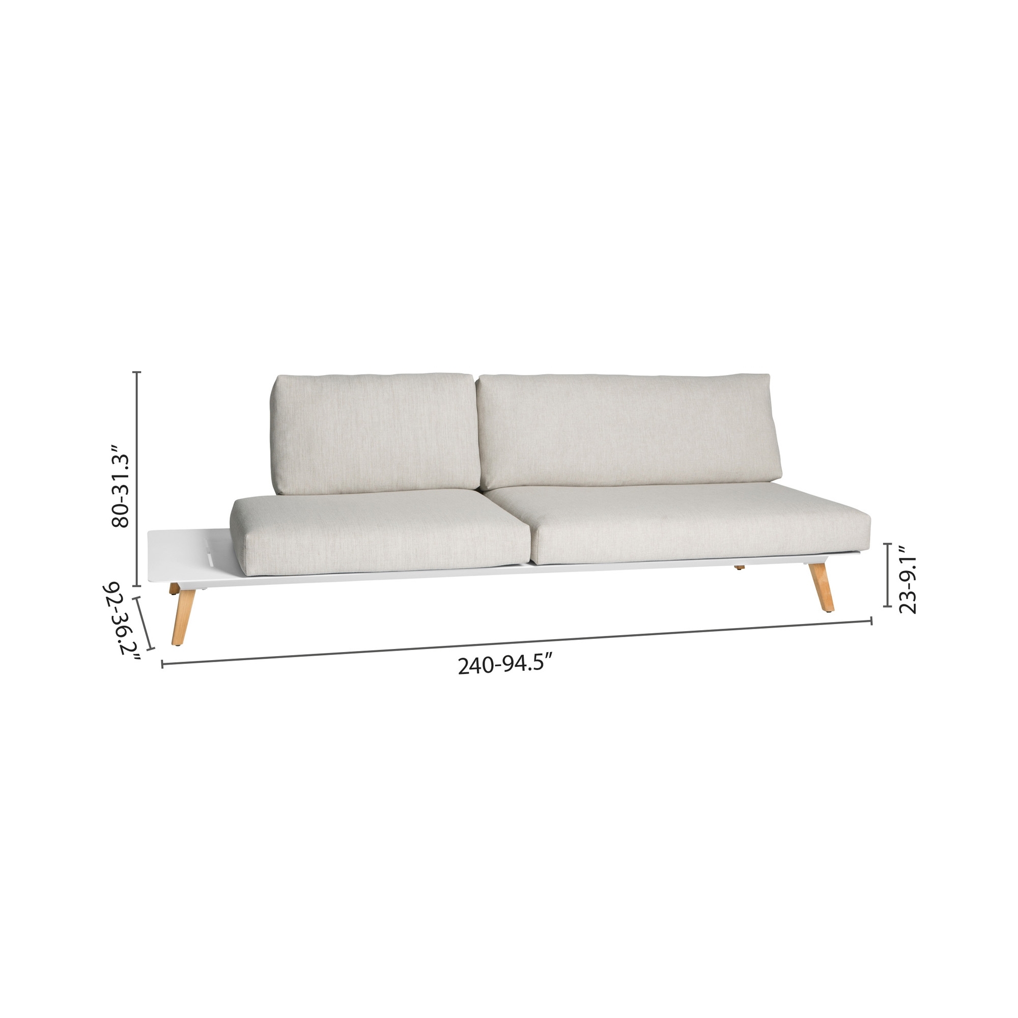 Seduta finale destra Link 01, 240 cm, con cuscini inclusi, è stata realizzata con materiali di altissima qualità: ha una struttura resistente in alluminio che garantisce stabilità e robustezza, il legno Teak delicatissimo che promette resistenza ai vari agenti atmpsferici e il tessuto imbottito che regala morbidezza e comfort di massimo livello. Questa seduta finale destra outdoor è una scelta ideale per chi vuole unire qualità e raffinatezza. La seduta finale Link 01 ha i cuscini inclusi, morbidissime nuvole realizzate con tessuto di alta qualità, facilmente removibili per il lavaggio grazie al fissaggio in velcro, che promettono un'accoglienza irresistibile per chiunque voglia rilassarsi. Link 01 seduta finale destra è perfetta per ospitare più persone e godere della comodità di questo magnifico gioiello negli ambienti più grandi open space, offrendo una soluzione di arredo elegante e sofisticata. Link 01 arricchisce ogni tipo di ambiente col suo stile impeccabile e confortevole, che si tratti di una veranda o di un salotto. Il suo design caratterizzato da linee pulite e moderne si adatta perfettamente a diversi stili di decorazione, dai più tradizionali a quelli più contemporanei. La scelta di questa seduta finale Link 01 è un investimento esteticamente raffinato ed estremamente funzionale.
