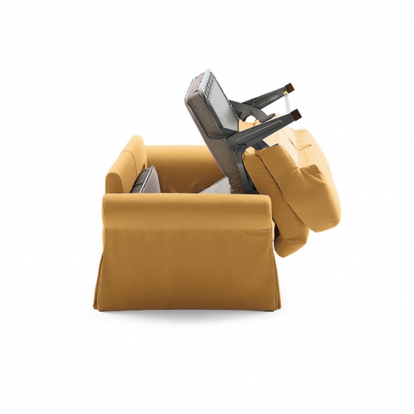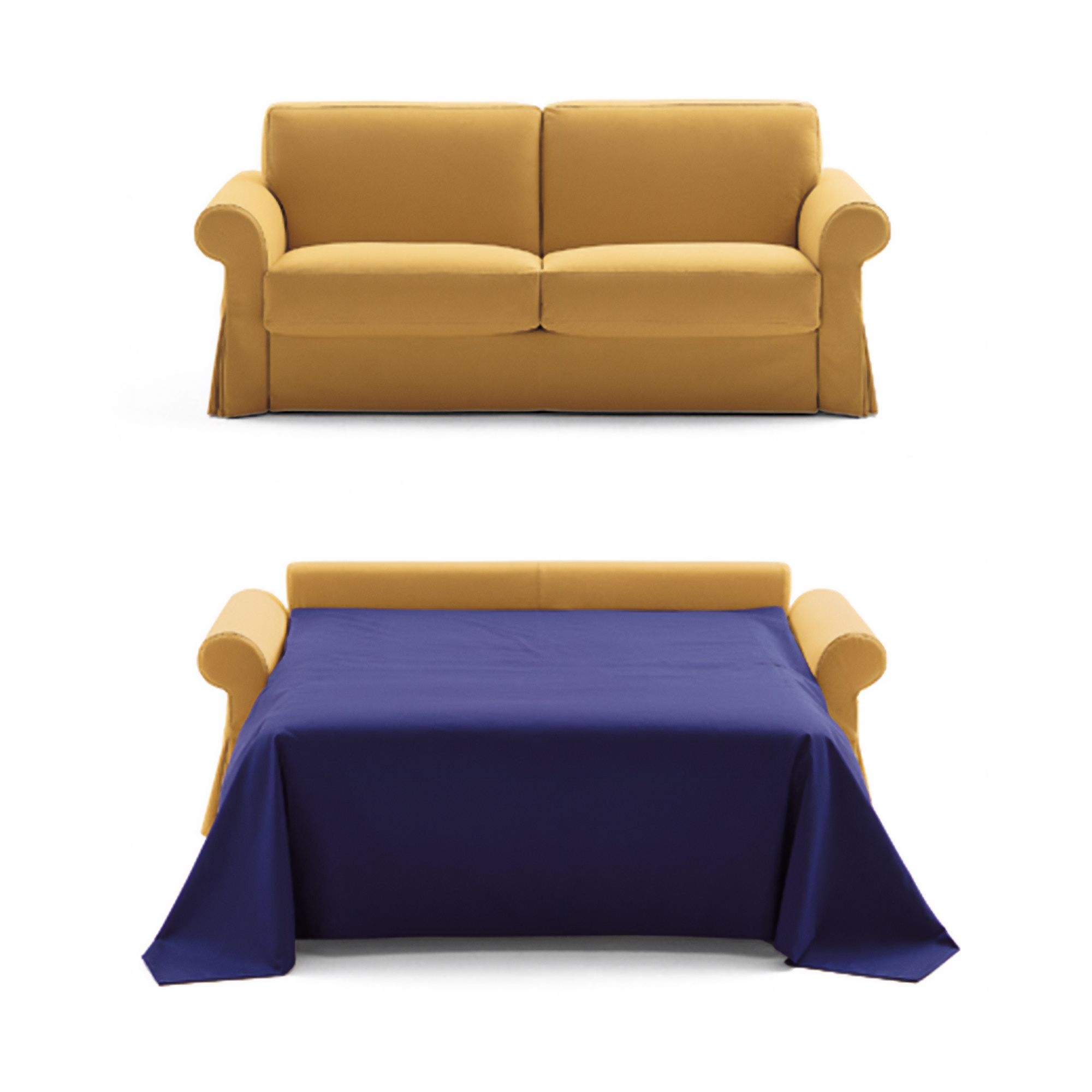 Divano letto matrimoniale Cy 160x200 realizzato con materasso a molle o lattice naturale o poliuretano espanso e supporto per dormire in acciaio elettrosaldato. Sfoderabile in una vasta gamma di tessuti e colori, il divano letto matrimoniale Cy rappresenta la scelta ideale per chi cerca un mobile trasformabile che non comprometta né lo stile né il comfort. Con Cy, il passaggio da divano a letto diventa un'azione semplice e intuitiva. Eliminando la necessità di rimuovere cuscini, il suo meccanismo unico permette di trasformare il divano in un comodo letto matrimoniale con un solo gesto: basta spingere la spalliera in avanti. Questa facilità d'uso è il risultato di un attento studio ingegneristico, volto a unire praticità e design. Il design di Cy rispecchia una visione estetica che attinge al meglio della tradizione del mobile classico, proponendo linee morbide e avvolgenti che invitano al relax. Disponibile in configurazioni da due o tre posti, si adatta con eleganza a ogni tipo di ambiente, dai più moderni agli spazi dal sapore più tradizionale, arricchendoli con una presenza distinta che non passa inosservata. Realizzato da Campeggi.