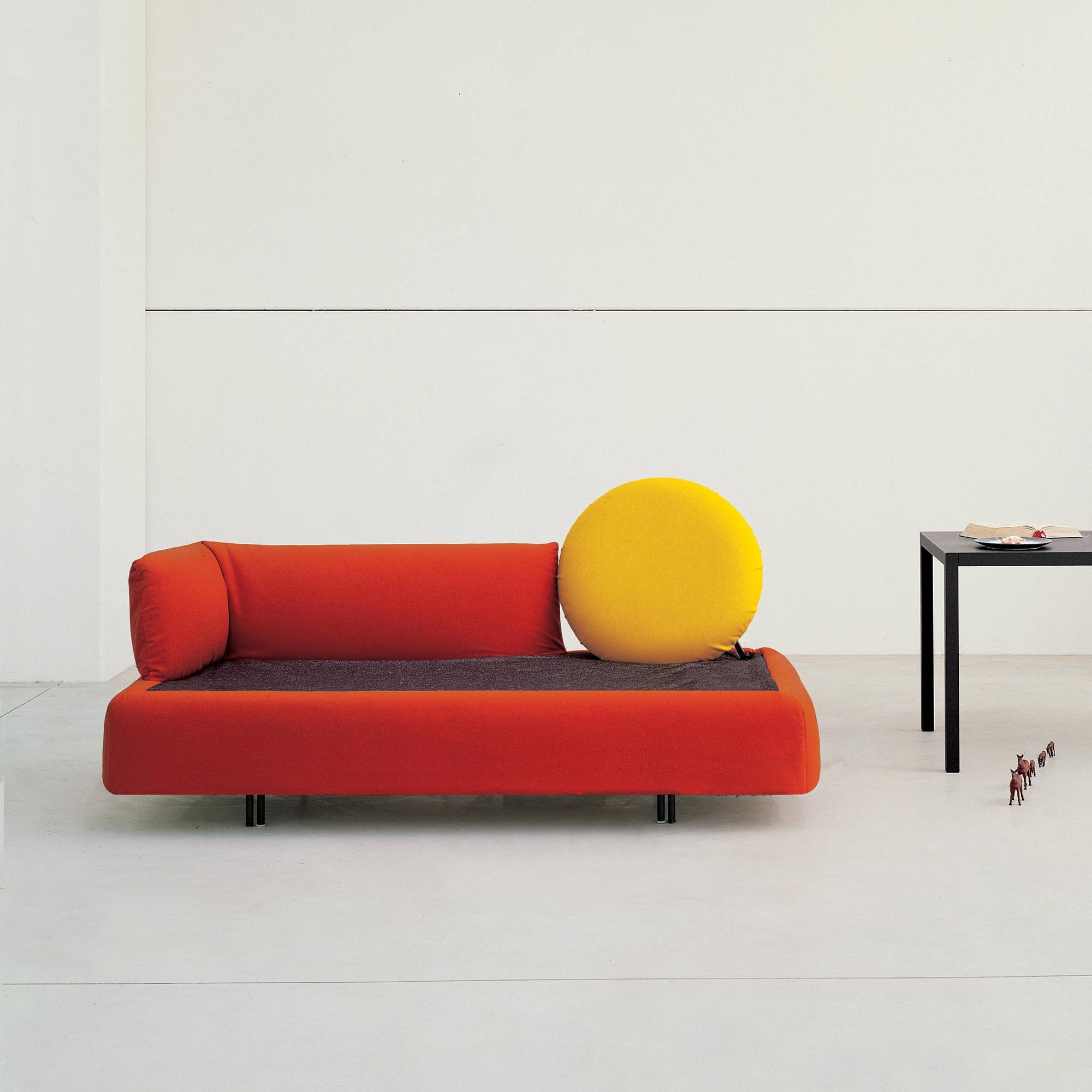 Divano letto singolo e matrimoniale Oblò realizzato con struttura in acciaio, imbottitura in poliuretano espanso e fibra e piano di riposo in faggio stratificato con materasso in poliuretano espanso. Questo divano letto, con la sua capacità di adattarsi e trasformarsi senza sforzo in poltrona, letto singolo, letto matrimoniale e chaise longue, rappresenta una soluzione d'arredo estremamente versatile, in cui nessuna forma prevale sull’altra e nessuna funzione è preponderante. Grazie all'approccio libero da vincoli e alla freschezza creativa che caratterizzano ogni progetto di Magistretti, Oblò ridefinisce il concetto di mobilità e flessibilità domestica. La sua capacità di mutare forma in base alle necessità, senza rinunciare a estetica e comfort, lo rende un pezzo unico, capace di adattarsi perfettamente a qualsiasi contesto abitativo, offrendo una risposta pratica e intelligente alle dinamiche della vita moderna.Oblò non è semplicemente un divano letto, ma una dichiarazione di stile che testimonia come funzionalità e design possano fondersi in un unico, sorprendente oggetto d'arredo, la cui versatilità lo rende un must-have per chi cerca soluzioni innovative senza tempo. Disegnato da Vico Magistretti per Campeggi.