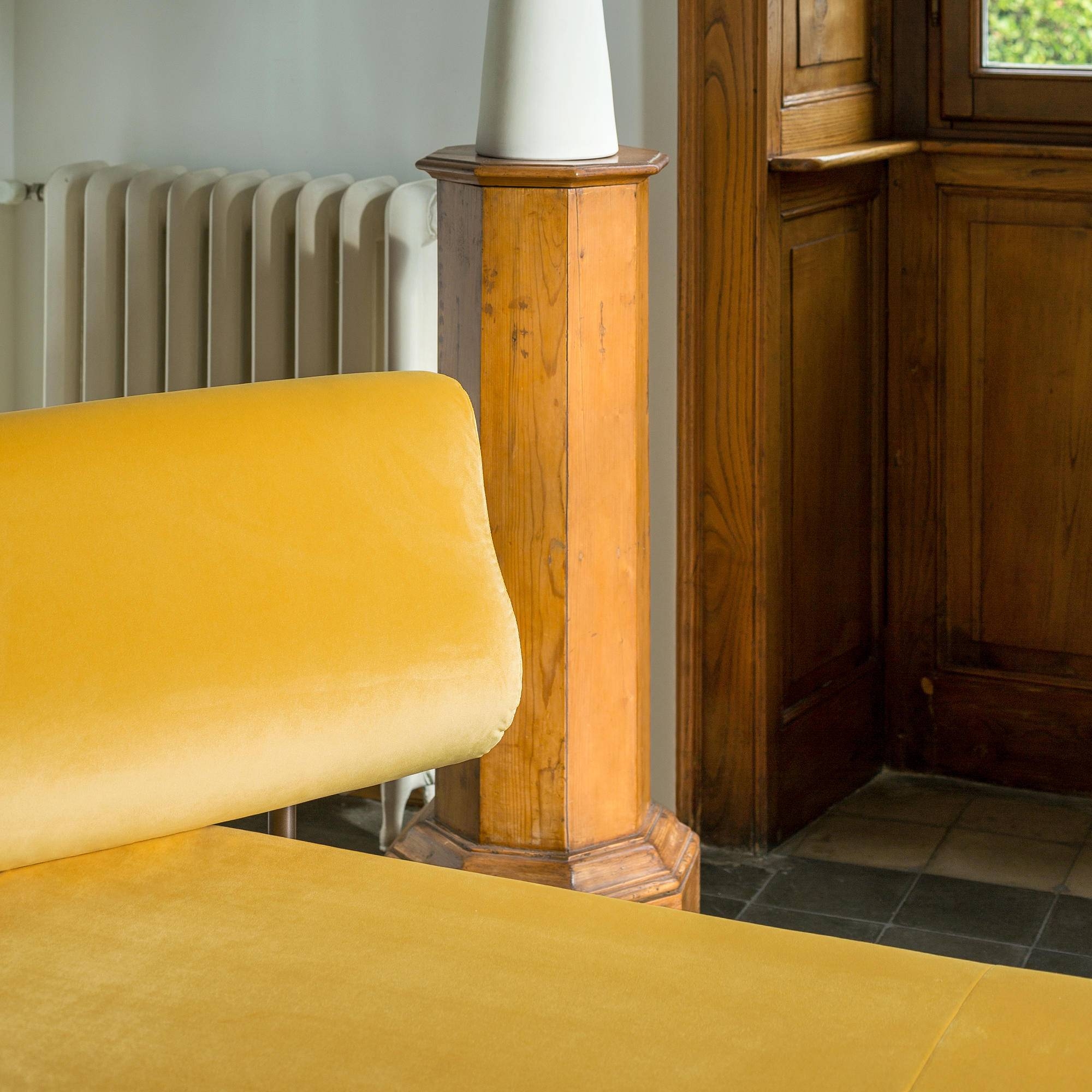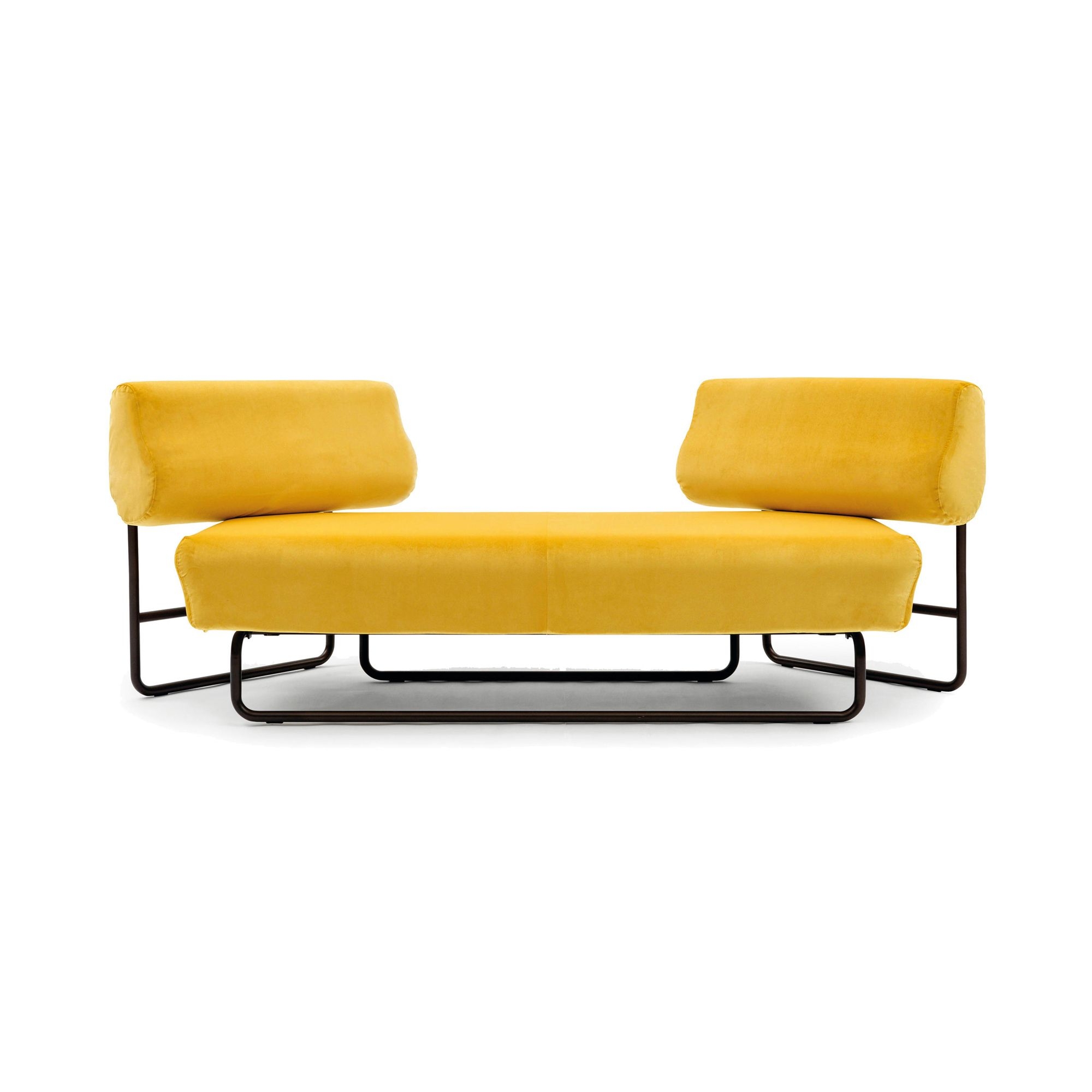 Divano letto Taipi realizzato con struttura in metallo e imbottitura in poliuretano espanso a quote differenziate. Sfoderabile in una vasta gamma di tessuti e colori, il divano letto Taipi rappresenta un vero e proprio capolavoro di design: un day bed unico, che combina innovazione, funzionalità e un'eleganza senza tempo. Grazie a un meccanismo ingegnoso, Taipi trasforma i tradizionali confini dell’arredo introducendo un gioco tridimensionale in cui i cuscini di schienale diventano braccioli, offrendo una soluzione arredativa di incredibile versatilità e carattere. Taipi si ispira all’austerità e alla maestosità dei letti a barca in stile Impero, reinterpretandoli in chiave moderna. La sua struttura in metallo brunito, unita a un'imbottitura in poliuretano espanso a quote differenziate, garantisce comfort e durevolezza. Il rivestimento, sfoderabile e disponibile in una gamma di colori variegata, permette di adattare Taipi a qualsiasi ambiente e stile decorativo, rendendolo una scelta perfetta per chi desidera unire l’eleganza del design all’utilità di un arredo funzionale e modulabile. Disegnato da Paolo Imperatori per Campeggi.