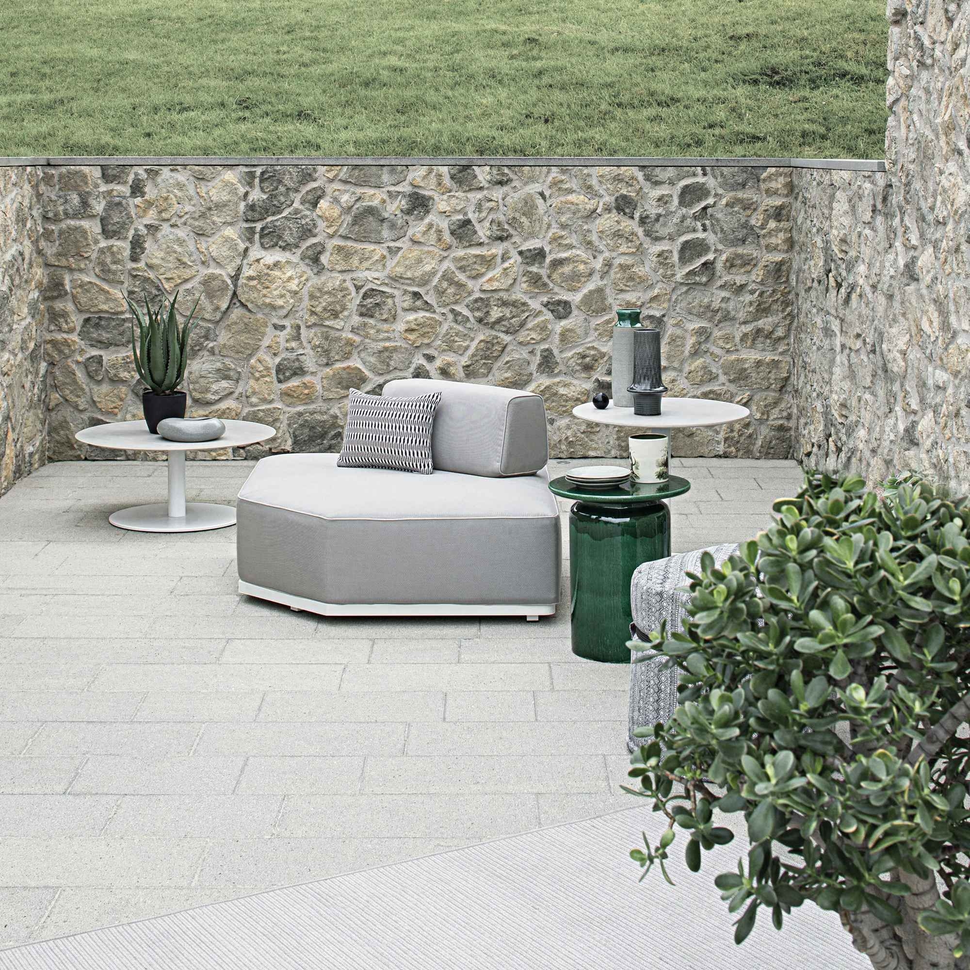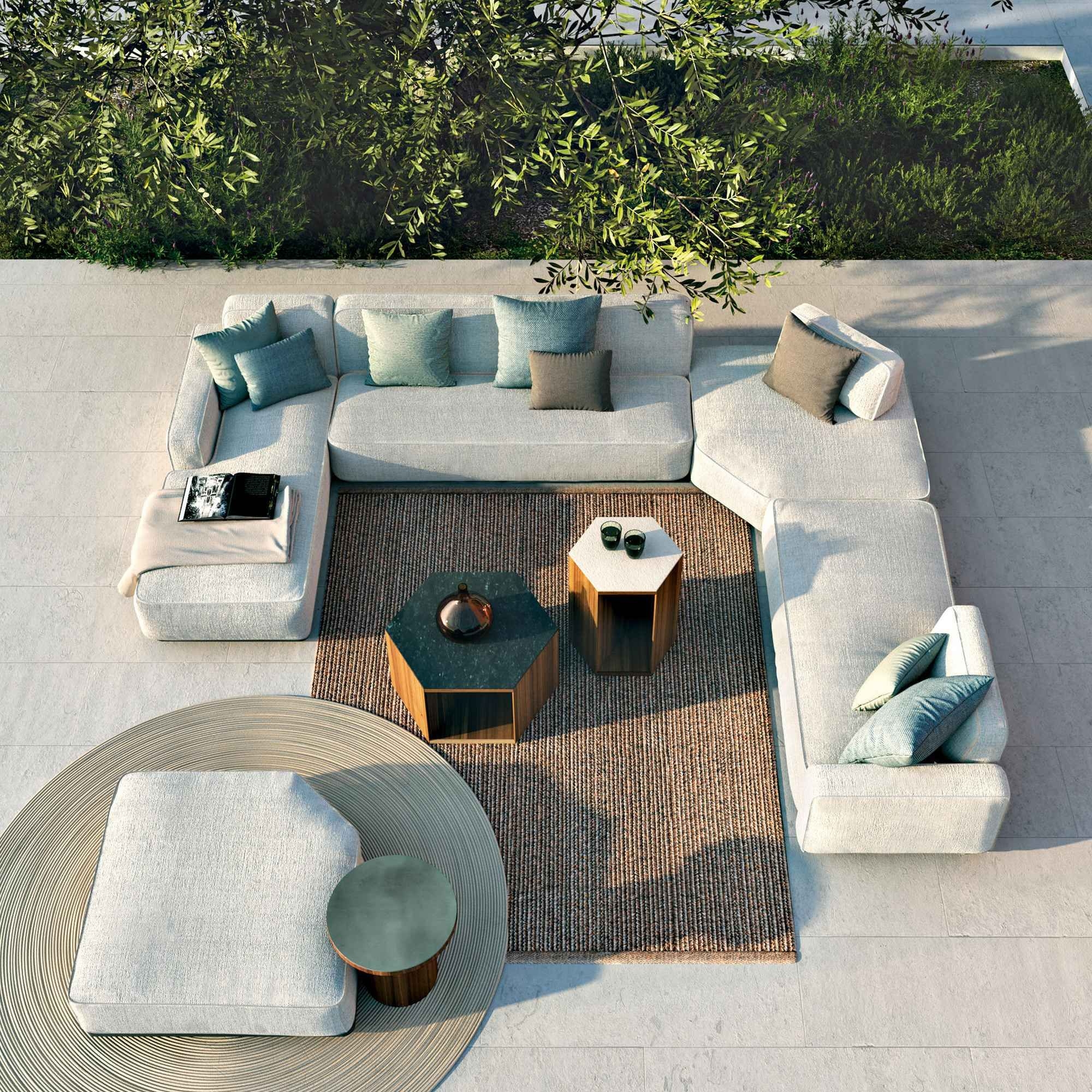 Modulo 11 angolare Laguna realizzato con base in alluminio verniciato a polveri epossidiche per esterni e seduta in poliuretano espanso rivestito in tessuto outdoor. Progettato con maestria per arricchire ogni spazio esterno, il modulo angolare Laguna unisce design innovativo e funzionalità superiore. Realizzato con una base in alluminio verniciato a polveri epossidiche, ideale per resistere agli elementi, e una seduta in poliuretano espanso rivestito in tessuto per esterni di alta qualità, questo pezzo è perfetto per creare angoli conversazione esterni comodi e sofisticati. Ispirato alla splendida città di Venezia e alla sua affascinante laguna, il modulo angolare Laguna è pensato per chi desidera portare uno stile unico e un'atmosfera magica nei propri spazi all'aperto. La modularità del sistema permette una personalizzazione completa, offrendo la possibilità di adattarsi a qualsiasi ambiente esterno, dal piccolo balcone al grande giardino, dalla terrazza alla piscina. La collezione Laguna, con il suo modulo angolare, si distingue per l'eleganza e la versatilità, garantendo non solo un comfort eccezionale ma anche una resistenza duratura alle condizioni atmosferiche. È la soluzione ideale per chi cerca di combinare l'estetica raffinata con la praticità, creando un'area relax esterna che rifletta la bellezza e il fascino veneziano. Con il modulo angolare Laguna, trasforma il tuo spazio esterno in un'oasi di tranquillità e stile, dove la funzionalità incontra l'arte del design italiano, per godere di momenti indimenticabili all'aria aperta. Disegnato da Atmosphera Creative Lab.