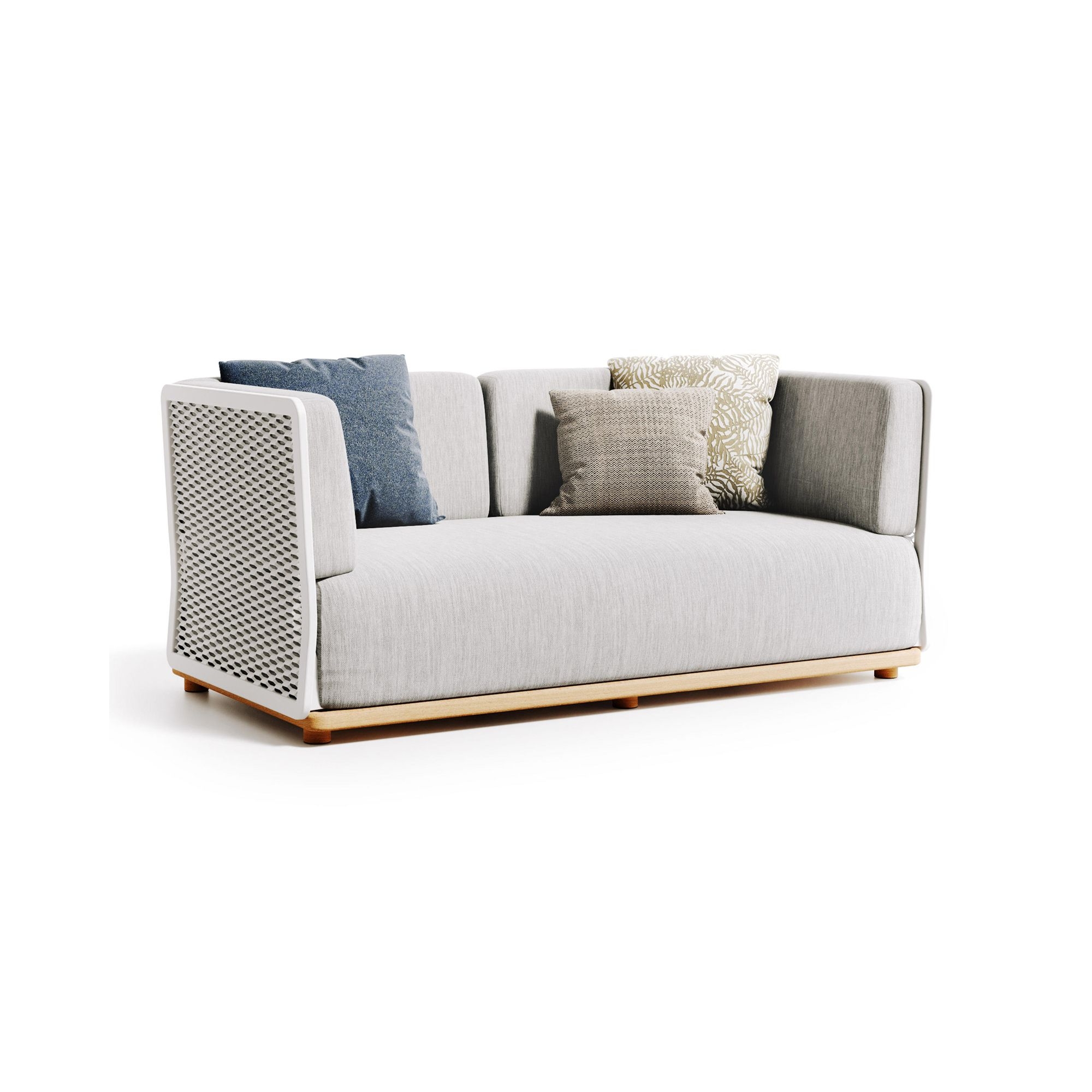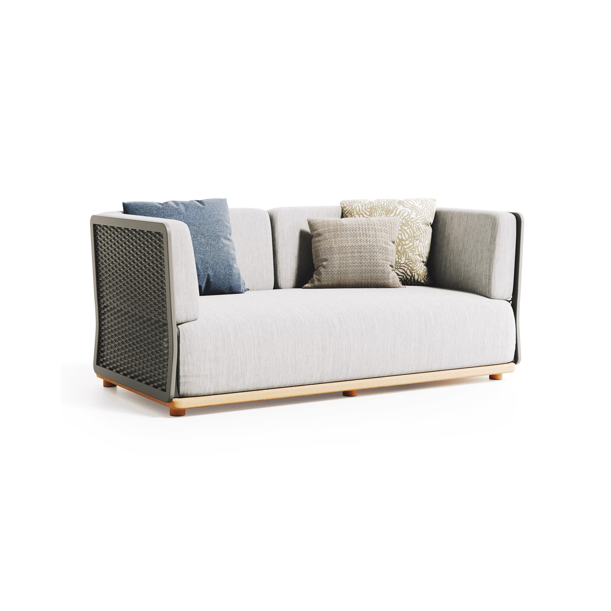 Divano da esterno Switch realizzato con struttura in alluminio, base tinta teak e cuscino della seduta e dello schienale rivestito in tessuto outdoor. Il divano outdoor Switch rappresenta l'apice dell'eleganza e della funzionalità nell'arredo esterno. Questo divano è ideato per armonizzare gli spazi all'aperto con la continuità degli interni, rispondendo alla perfezione alle esigenze di chi ricerca raffinatezza senza rinunciare alla praticità e al comfort. I materiali pregiati si integrano in una visione di design contemporaneo all'avanguardia, caratterizzata da modularità e personalizzazione, consentendo di creare soluzioni uniche che si adattano a ogni contesto esterno, dal giardino privato, al terrazzo con vista, fino alle aree lounge di lusso. Al centro della filosofia di Switch vi è la versatilità: partendo dal singolo divano, è possibile integrare altri elementi della collezione, sviluppando composizioni su misura che si adattano perfettamente alle esigenze dello spazio disponibile. Il Divano da Esterno Switch invita a reinterpretare il concept di spazio aperto come prolungamento dell'abitare quotidiano, in un connubio sorprendente di tecnologia, design e funzionalità. Con le sue linee pulite, stile moderno e possibilità di personalizzazione, il Divano Switch diventa protagonista dell'outdoor, trasformandolo in un'oasi di relax ed eleganza. Un vero e proprio gioiello di design pensato per esaltare la bellezza e il piacere della vita all'aria aperta, il Divano da Esterno Switch di Atmosphera Creative Lab simboleggia un nuovo canone di bellezza e comodità nel mondo dell'arredo esterno. Disegnato da Atmosphera Creative Lab.