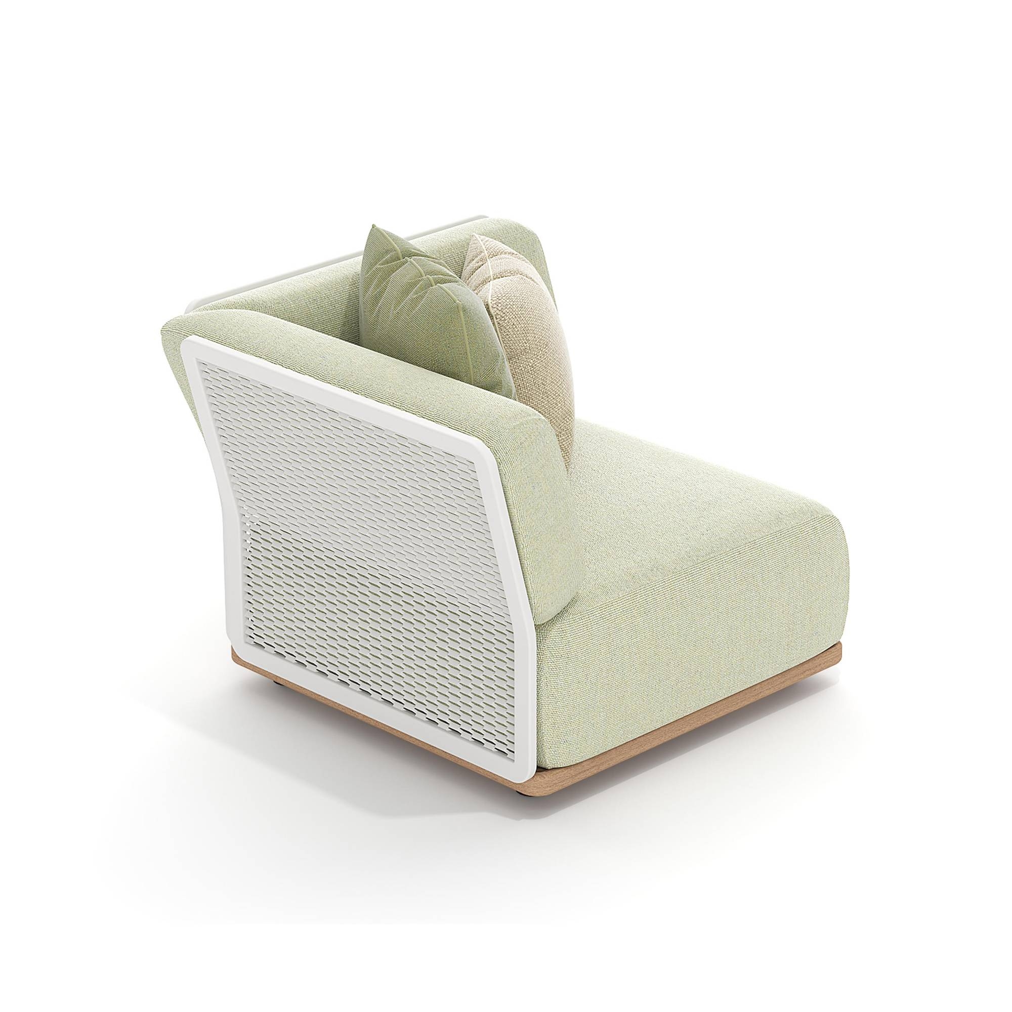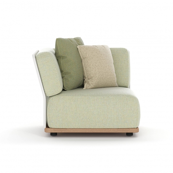 Modulo angolare divano Switch realizzato con struttura in alluminio, base tinta teak e cuscino della seduta e dello schienale rivestito in tessuto outdoor. Il modulo angolare per divano Switch costituisce un elemento di design innovativo e versatile, ideato per arricchire e personalizzare l'area outdoor. Grazie alla sua forma angolare, è perfetto per creare composizioni personalizzate del divano Switch, permettendo di organizzare lo spazio esterno in maniera creativa ed efficiente. La base tinta teak aggiunge un tocco di eleganza naturale, integrandosi armoniosamente con vari stili di arredo esterno. La combinazione di materiali di alta qualità e il design attento alle esigenze di versatilità e personalizzazione, rendono il modulo angolare una scelta ideale per chi desidera creare spazi esterni unici e accoglienti. Che sia utilizzato per ampliare il divano Switch esistente o come pezzo standalone per creare una zona relax dedicata, il modulo angolare divano Switch si adatta perfettamente a qualsiasi configurazione, offrendo infinite possibilità di disposizione. Questo elemento rappresenta l’apice dell’innovazione nel design di mobili outdoor, coniugando estetica, funzionalità e la possibilità di personalizzare lo spazio esterno in base alle proprie esigenze e al proprio stile. Ideale per chi ama reinventare continuamente il proprio spazio all'aperto, il modulo angolare del divano Switch è la scelta preferita per aggiungere un tocco di classe e versatilità all'arredamento esterno, garantendo allo stesso tempo un comfort impareggiabile e una resistenza duratura agli elementi naturali. Disegnato da Atmosphera Creative Lab.