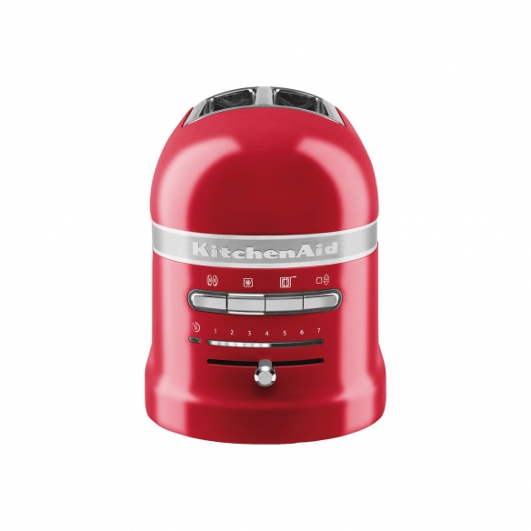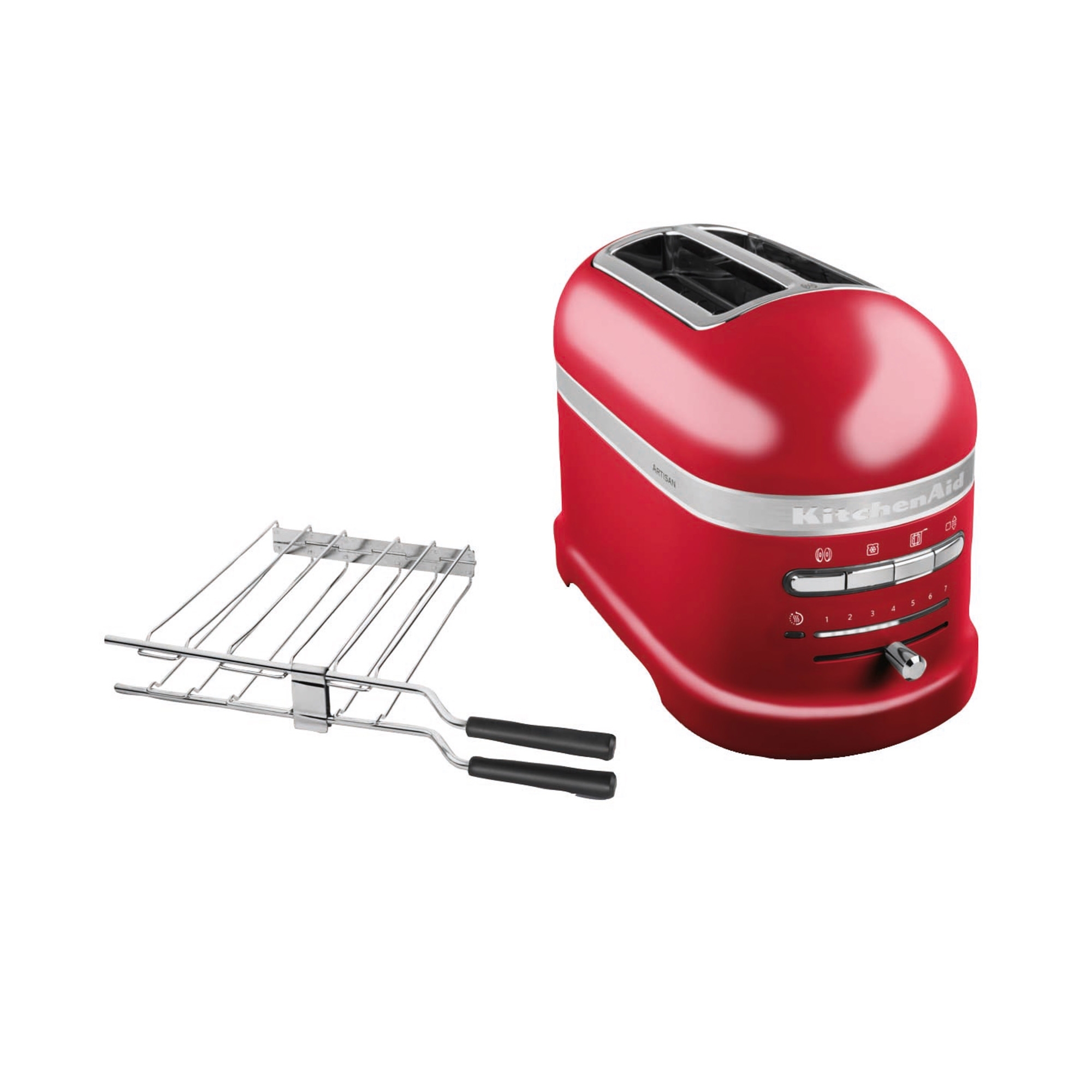 Il tostapane Artisan 2 fette è un prezioso e indispensabile accessorio per la tua cucina, realizzato da KitchenAid in alluminio pressofuso. Questo modernissimo tostapane è disponibile in nove differenti combinazioni ed è dotato di due scomparti extra-large per una doratura omogenea; inoltre, Artisan è un accessorio innovativo grazie alla tecnologia di abbassamento e innalzamento della leva: abbassa nuovamente il toast per mantenerlo caldo se non lo tiri fuori dopo un po'. In più, avrai la possibilità di impostare 7 tipi di doratura diverse con timer LED per il conto alla rovescia. La pinza inclusa per il toast assicura una perfetta riuscita, mantenendo tutto pulito: bisogna solamente posizionare il toast con il ripieno tagliato finemente, chiudere la pinza e introdurla nello slot del tostapane. Il manico termoisolante permette di rimuovere con facilità il toast croccante una volta pronto per essere servito. Il tostapane Artisan 2 fette ha anche la modalità di scongelamento e modalità bagel. Scegliere questo tostapane significa optare per un prodotto all'insegna della qualità.
