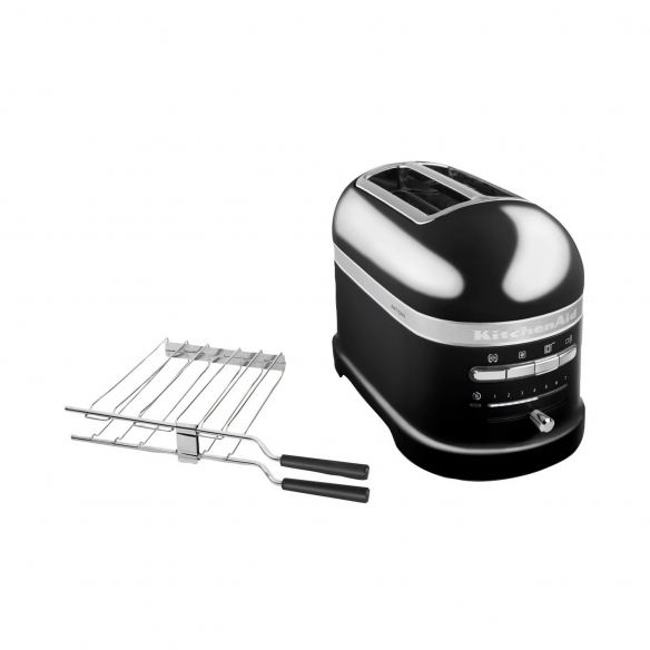 Il tostapane Artisan 2 fette è un prezioso e indispensabile accessorio per la tua cucina, realizzato da KitchenAid in alluminio pressofuso. Questo modernissimo tostapane è disponibile in nove differenti combinazioni ed è dotato di due scomparti extra-large per una doratura omogenea; inoltre, Artisan è un accessorio innovativo grazie alla tecnologia di abbassamento e innalzamento della leva: abbassa nuovamente il toast per mantenerlo caldo se non lo tiri fuori dopo un po'. In più, avrai la possibilità di impostare 7 tipi di doratura diverse con timer LED per il conto alla rovescia. La pinza inclusa per il toast assicura una perfetta riuscita, mantenendo tutto pulito: bisogna solamente posizionare il toast con il ripieno tagliato finemente, chiudere la pinza e introdurla nello slot del tostapane. Il manico termoisolante permette di rimuovere con facilità il toast croccante una volta pronto per essere servito. Il tostapane Artisan 2 fette ha anche la modalità di scongelamento e modalità bagel. Scegliere questo tostapane significa optare per un prodotto all'insegna della qualità.