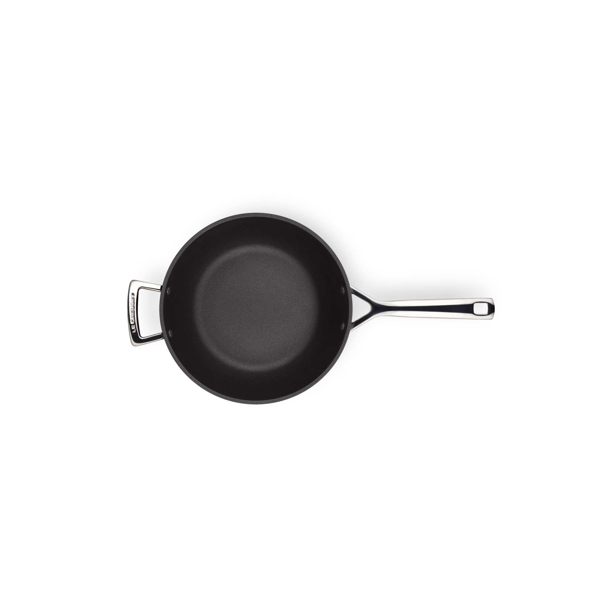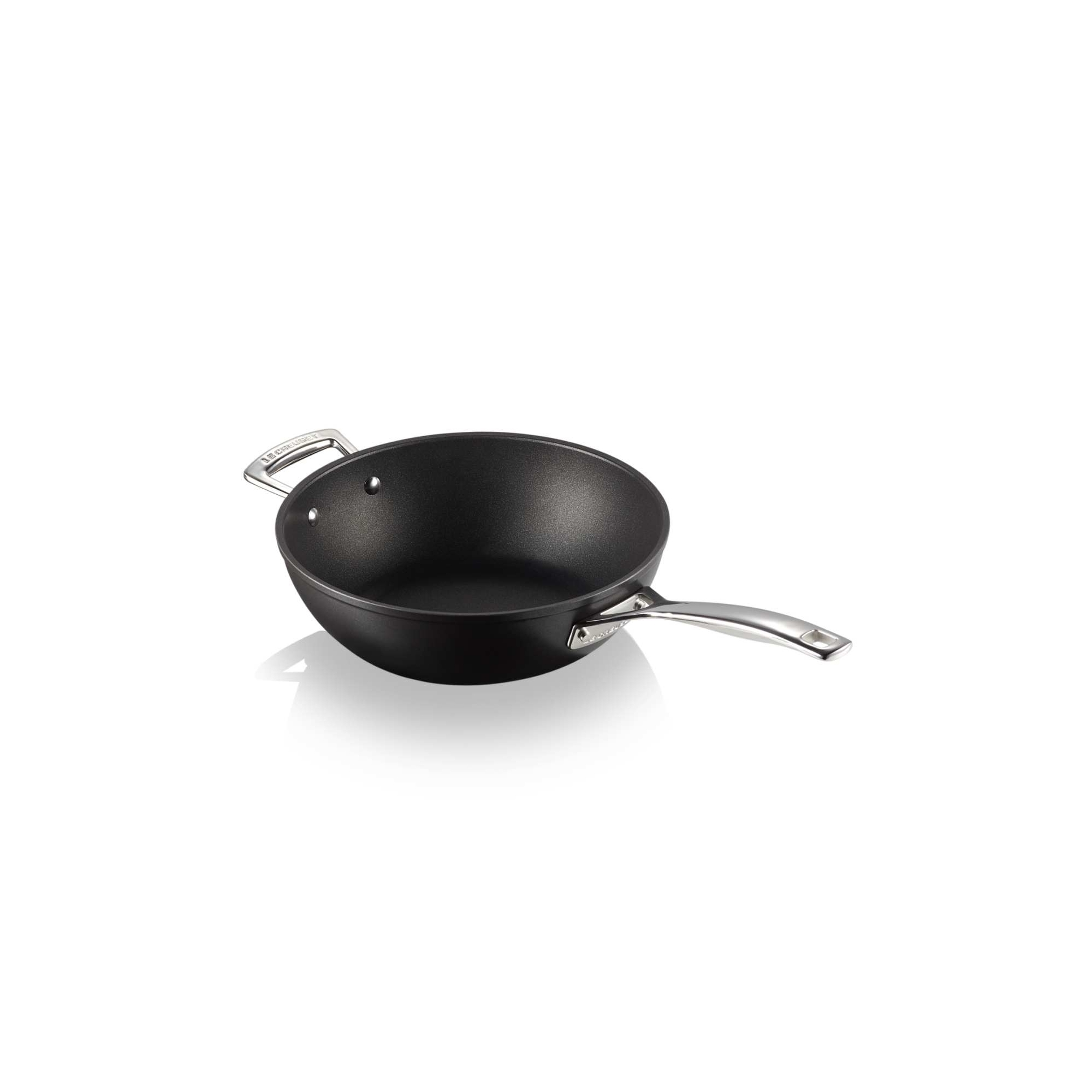 Padella Wok in alluminio antiaderente con manico lungo e maniglia dal diametro di 26 cm di colore nero, realizzata da Le Creuset.