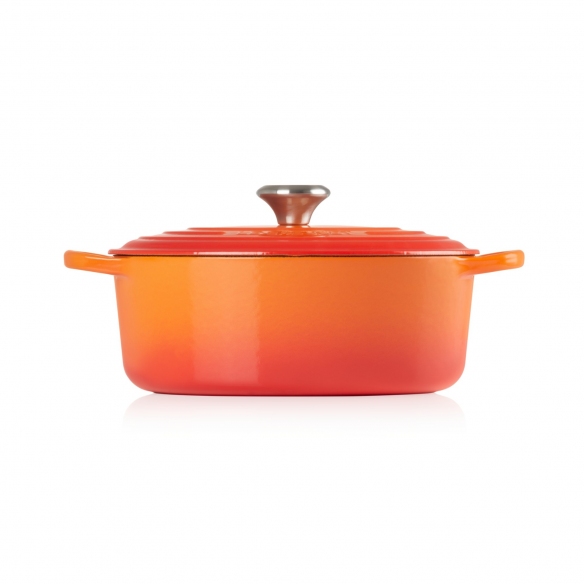 Casseruola Cocotte ovale Evolution realizzata in ghisa vetrificata. Disponibile in 3 finiture di colore, è l'elemento indispensabile per la tua cucina! Il punto di forza di Le Creuset è il materiale utilizzato per creare oggetti unici nel suo genere: la ghisa vetrificata infatti non solo è uno dei materiali più igienici e duraturi, ma trattiene il calore per cucinare e rosolare in modo uniforme ottenendo cibi di grande gusto! Questa fantastica Casseruola dispone di due grandi e pratici manici, così potrai spostarti dal piano cottura alla tavola in modo pratico e sicuro! La ciliegina sulla torta è il coperchio: il pomolo al centro è resistente al calore (fino a 250 °C) ed è progettato per un'ottima presa! Progettata e realizzata da Le Creuset.