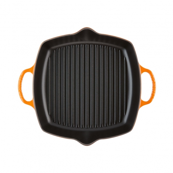 Grill quadrato profondo Evolution realizzato in ghisa vetrificata smaltata all'esterno. Disponibile in 3 finiture di colore (arancio, ciliegia e nero matt), questo fantastico grill ti permetterà di cucinare grossi pezzi di carne, pollame, verdure o quant'altro in modo unico! I manici ergonomici ti permettono una presa pratica e sicura e le pareti più alte proteggono dagli schizzi durante la cottura e trattengono i succhi durante la preparazione delle salse. I beccucci presenti lateralmente ti permetteranno di servire le pietanze senza sgocciolare! Crea piatti deliziosi e salutari con il grill Evolution di Le Creuset!
