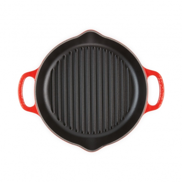 Grill rotondo profondo Evolution realizzato in ghisa vetrificata smaltata all'esterno. Disponibile in 3 finiture di colore (arancio, ciliegia e nero matt), questo fantastico grill ti permetterà di cucinare grossi pezzi di carne, pollame, verdure o quant'altro in modo unico! I manici ergonomici ti permettono una presa pratica e sicura e le pareti più alte proteggono dagli schizzi durante la cottura e trattengono i succhi durante la preparazione delle salse. Beccucci presenti lateralmente ti permetteranno di servire le pietanze senza sgocciolare! Crea piatti deliziosi e salutari con il grill Evolution di Le Creuset!