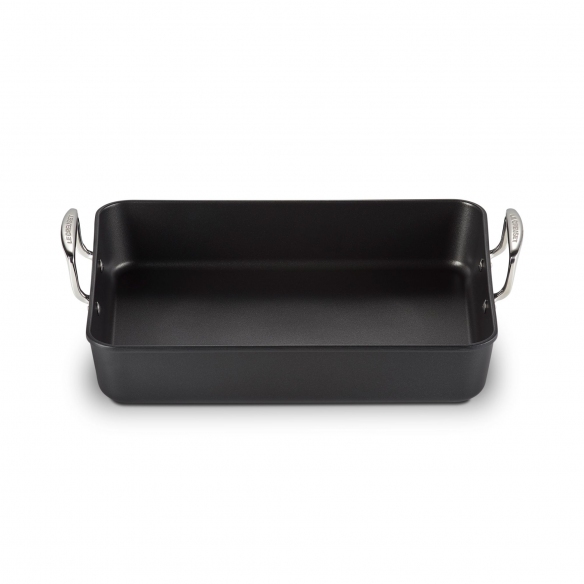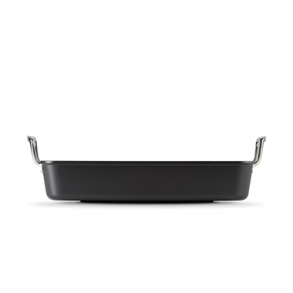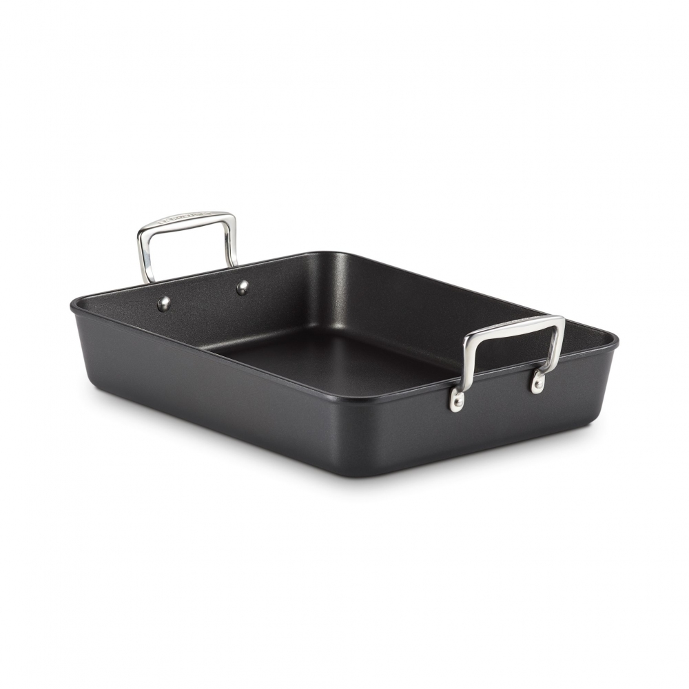Arrostiera di forma rettangolare realizzata in alluminio antiaderente di ultima generazione avente due grandi e pratici manici in acciaio inox. Ideale per rosolare, infornare, bollire o cuocere a bagnomaria, questa arrostiera ti consente di preparare porzioni abbondanti nei tuoi pranzi domenicali o nelle tue cene infrasettimanali! Il pratico rivestimento aderente ti garantisce una cucina sana e una pulizia impeccabile: le sue proprietà infatti impediscono al cibo di attaccarsi anche con quantità d'olio minime! Questa arrostiera si mantiene nel tempo: la sua finitura forte e robusta è pensata per resistere all'uso quotidiano ed è molto facile da pulire. I grandi manici in acciaio inox assicurano una presa impeccabile e in sicurezza. La tua alleata perfetta in cucina!