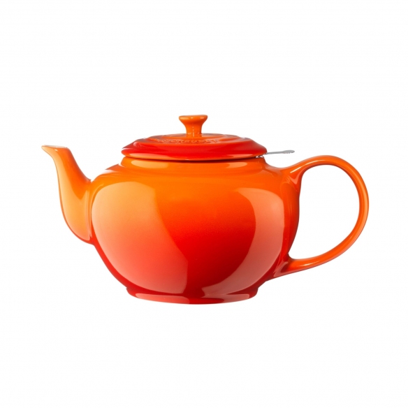 Teiera realizzata in gres vetrificato disponibile nei colori arancio e ciliegia comprendente un infusore in acciaio inox. Ideale per preparare e servire le tue bevande calde preferite, questa teiera si presenta con un design vintage davvero particolare. L'infusore permette di cuocere il tuo tè in modo semplicissimo: le foglie del tè rimangono in infusione nella teiera senza mescolarsi con l'acqua. Il gres vetrificato mantiene calde le tue bevande, distribuendo il calore uniformemente. Scegli la teiera con infusore di Le Creuset, deisgn inimitabile!