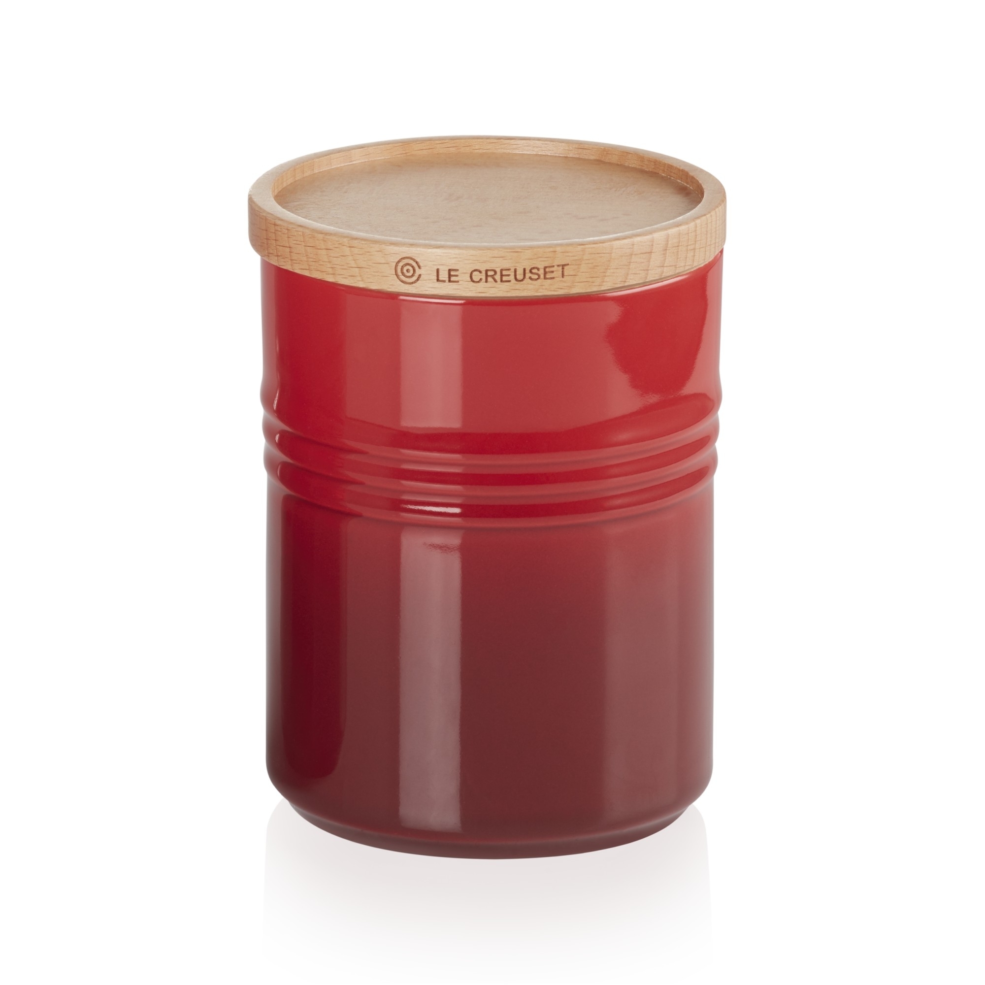 Barattolo da cucina realizzato in gres vetrificato con coperchio in legno di faggio. Con un diametro di 10 cm, questo barattolo è perfetto per contenere caffè, farina, zucchero, cereali e molto altro ancora. Disponibile nei colori arancio e ciliegia, questo barattolo presenta un design semplice, di ispirazione scandinava, capace di donare eleganza alla tua cucina o alla tua tavola. Il motivo a tre anelli inciso sul corpo rimanda direttamente all'inconfondibile design Le Creuset!