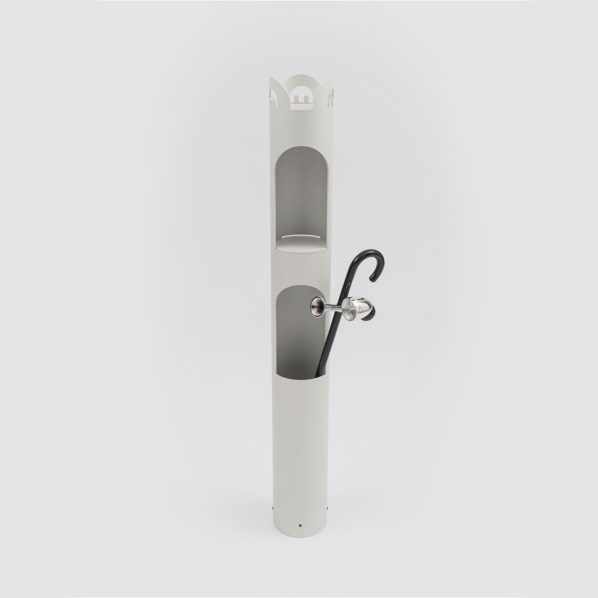 Appendiabiti Kerguelen realizzato con struttura in alluminio e ferro verniciati a polvere e struttura interna in polistirene. Disponibile in 2 eleganti finiture di colore (bianco e nero), Kerguelen si presenta con un design ricercato, dedicato all'accoglienza: gli indumenti si appendono ai nove lobi grandi e piccoli, mentre gli ombrelli si ripongono nella cavità inferiore. Kerguelen non è un semplice complemento d'arredo dove riporre indumenti e oggetti, è una vera e propria scultura da esporre ed ammirare in tutte le sue particolarità! Disegnato da Enzo Mari per Danese Milano.