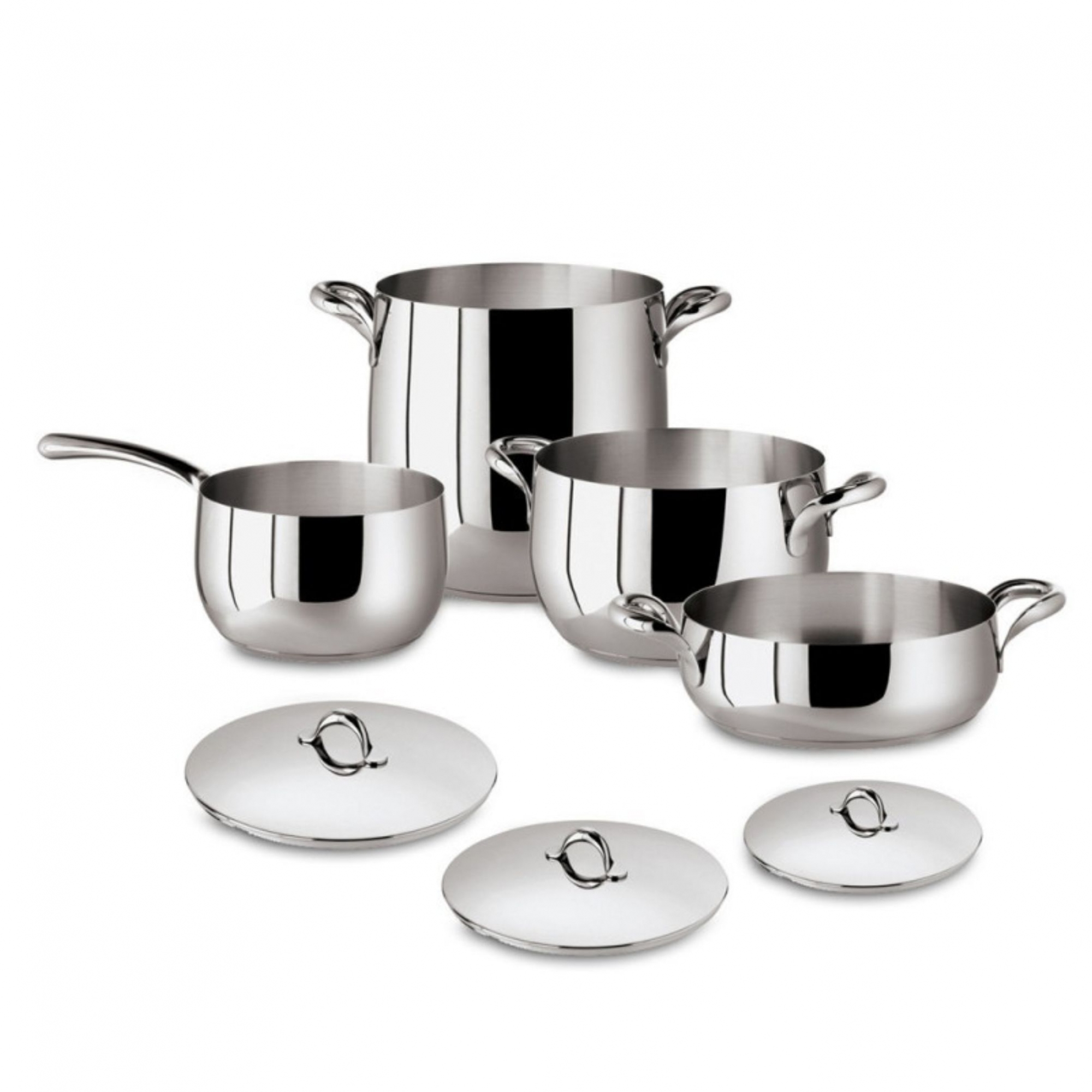 Batteria di 7 pezzi Kikka, realizzata in acciaio inox 18/10 di massima qualità comprendente: