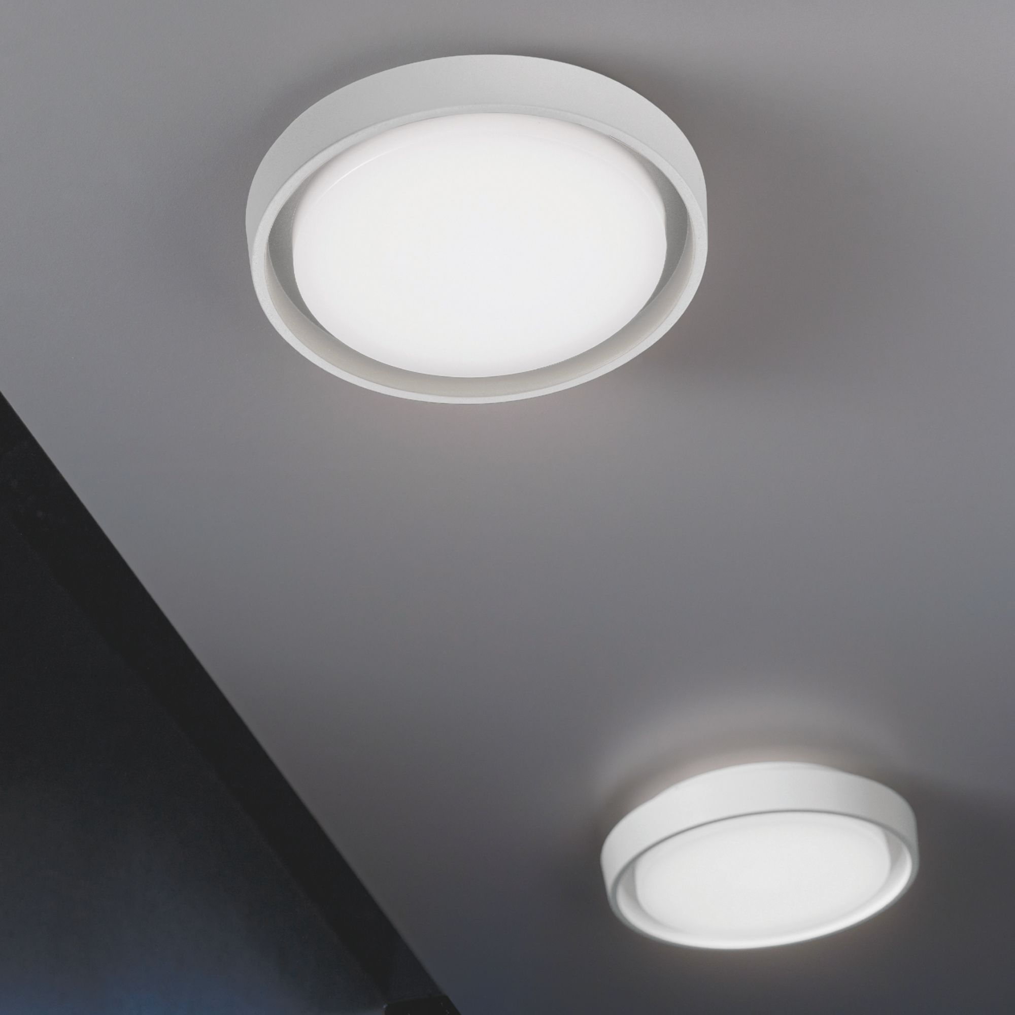 Lampada da soffitto/parete tonda outdoor Alu 27 cm con struttura in pressofusione di alluminio verniciato con diffusore in policarbonato opalino satinato. Disponibile in 2 varianti colore (bianco e grigio scuro). L’elevato grado di protezione (IP54) rende il prodotto adatto all’uso esterno ed interno. Ideale per illuminare con stile gli spazi esterni della casa, di locali, ristoranti, hotel. Disegnata da Federico de Majo per Zafferano.