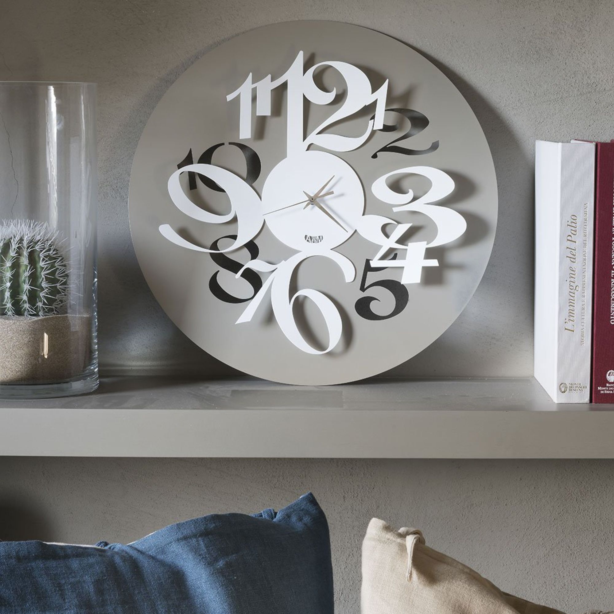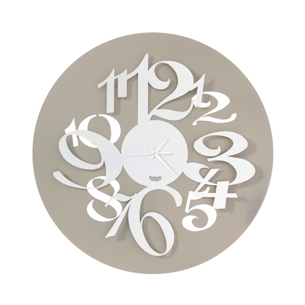 Orologio da parete Focus realizzato in ferro con quadrante a specchio piccolo. Il ferro è il materiale di punta del brand che viene tagliato a laser per mescolarsi con i colori e restituire un mood leggero e contemporaneo. Presenta grandi numeri che escono dall’orologio e diventano il corpo di esso, con uno stile a riccioli. Disponibile in due combinazioni colore (fango-avorio e sabbia-bianco), l’orologio da parete Focus è unico nel suo genere. Realizzato da Arti e Mestieri.