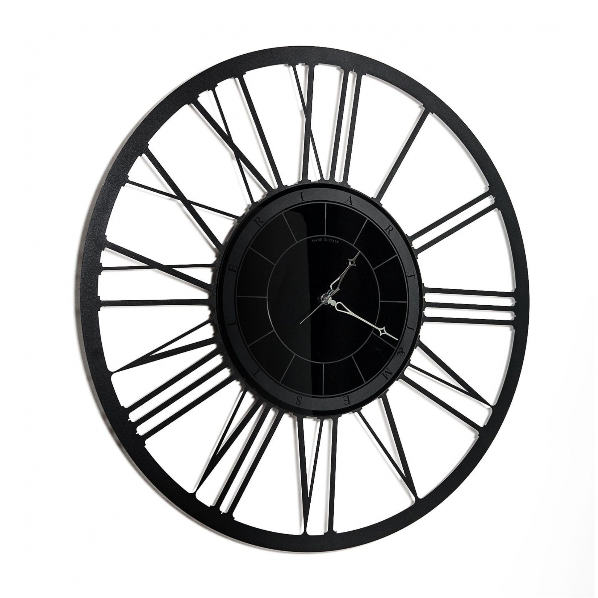 Orologio da parete Big Lux realizzato in ferro con un quadrante circolare al centro e una struttura a forma di raggio. L’orologio è caratterizzato da eleganti numeri romani e line sottili. Il ferro è il materiale di punta del brand che viene tagliato a laser per mescolarsi con i colori e restituire un mood leggero e contemporaneo. Disponibile in tre varianti colore (avorio, nero e bronzo). Realizzato da Arti e Mestieri.