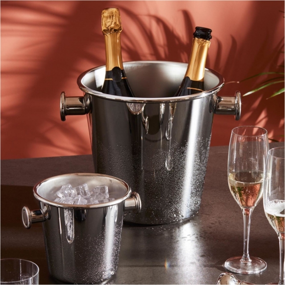 Secchiello per ghiaccio 5051 realizzato all'esterno in acciaio inossidabile 18/10 lucido e all'esterno e in acciaio inossidabile 18/10 satinato. Perfetto per ospitare le tue bollicine preferite, questo esclusivo secchiello per ghiaccio si presenta con un design semplice e pulito, coniugando praticità e qualità produttiva. Disegnato da Ettore Sottsass per Alessi.