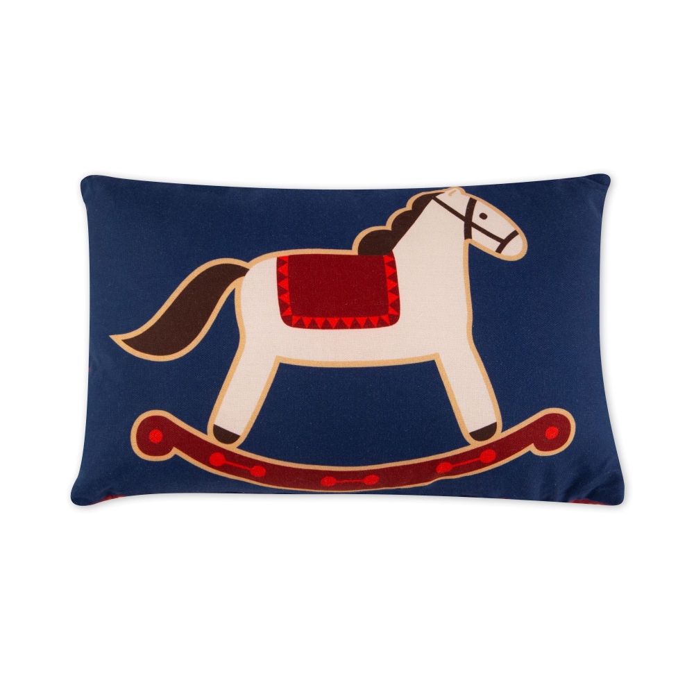 Cuscino Vintage Christmas 30x45 cm realizzato con federa e imbottitura. La federa è double-face, rossa dietro e blu davanti con una decorazione che ricorda l'infanzia di un tempo. Un cavalluccio a dondolo ruba l'intera scena e, posizionato nel divano o nel letto, donerà all'ambiente circostante una sensazione di aria festiva e gioiosa. La morbidezza è sicuramente uno dei suoi punti a favore, oltre all'estrema magnificenza. Cuscino Vintage Christmas è perfetto anche come regalo, dai più grandi ai più piccini. Disegnato da Excélsa.