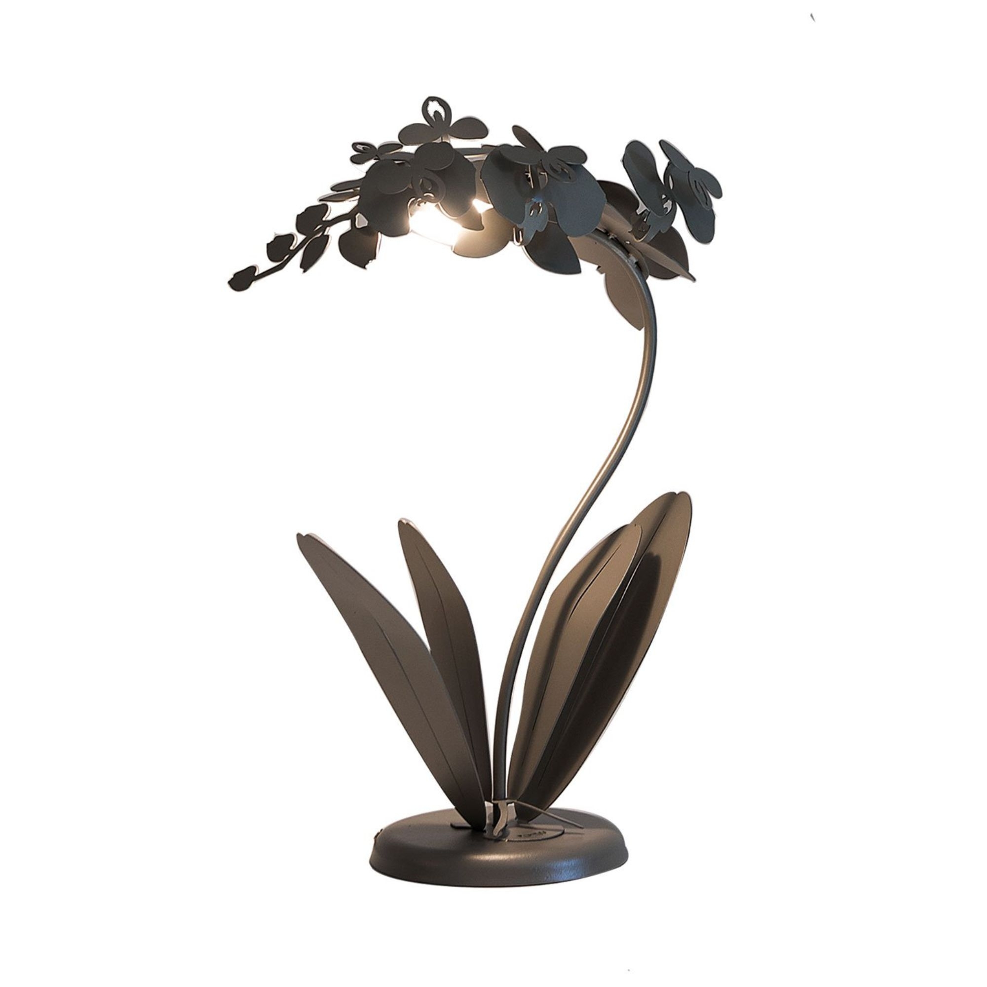 Lampada da tavolo Orchidea realizzata in ferro. Appartiene ad un’intera linea ispirata alle orchidee, è disponibile in tre variante colore (bianco, bronzo, sabbia). Il ferro è il materiale di punta del brand che viene tagliato a laser per mescolarsi con i colori e restituire un mood leggero e contemporaneo. La lampada è fornita di attacco E14. Lampadina non inclusa. Realizzata da Arti e Mestieri.