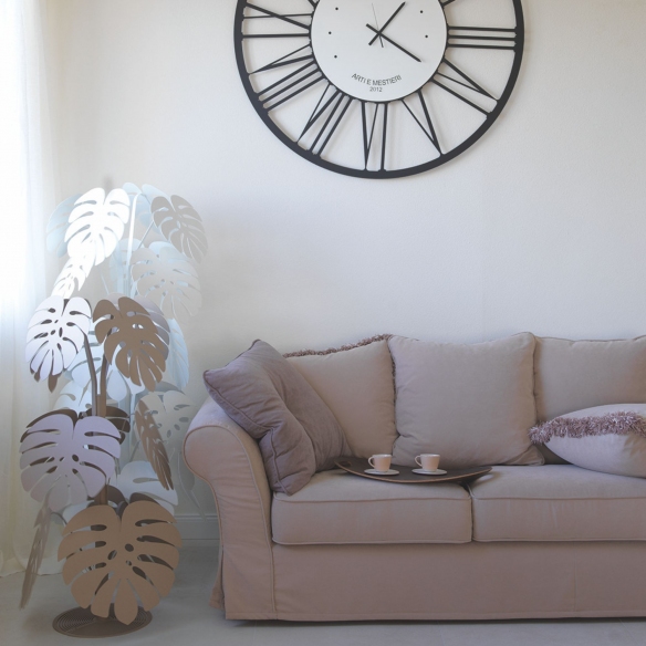 Pianta Monstera grande realizzata in ferro. Appartiene ad un’intera linea ispirata all’omonima pianta, è disponibile in quattro varianti colore (bianco, bronzo, beige e verde garden). Il ferro è il materiale di punta del brand che viene tagliato a laser per mescolarsi con i colori e restituire un mood leggero e contemporaneo. Pianta Monstera è un perfetto oggetto decorativo, dalle discrete dimensioni, che arrederà il tuo arredamento. Realizzata da Arti e Mestieri.