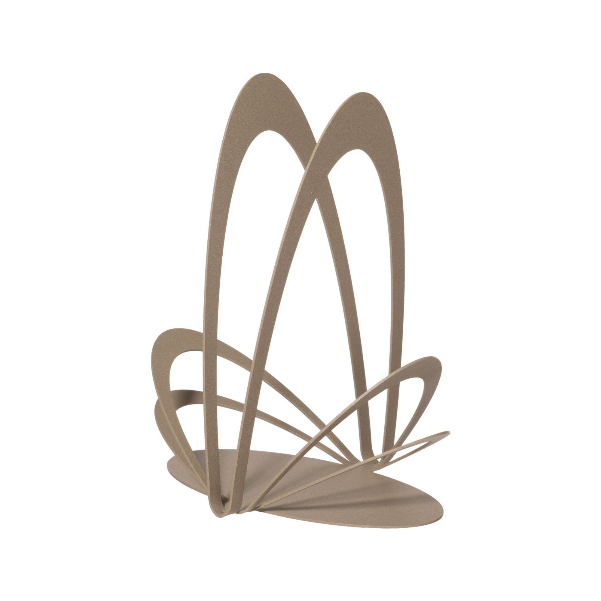 Porta bicchieri Origami realizzato in ferro con manico e struttura con linee curve che rimandano ai disegni dell’origami.  Disponibile in tre varianti colore (beige, fango e bianco). Il ferro è il materiale di punta del brand che viene tagliato a laser per mescolarsi con i colori e restituire un mood leggero e contemporaneo. Porta bicchieri Origami è l’oggetto che può essere sia un pezzo d’arredamento che un oggetto funzionale. Realizzato da Arti e Mestieri.