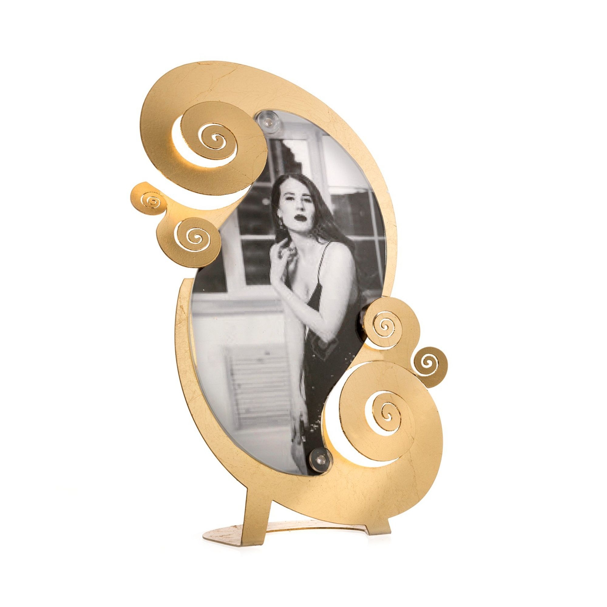 Porta foto Circeo realizzato in ferro. La cornice è abbellita da particolari riccioli sia sopra che sotto. Presenta delle linee eleganti e sinuoso, è disponibile in cinque splendide finiture colore. Porta foto Circeo in ferro è solido e decorativo e abbellirà le tue superfici vuote con i ricordi più belli. Realizzato da Arti e Mestieri.
