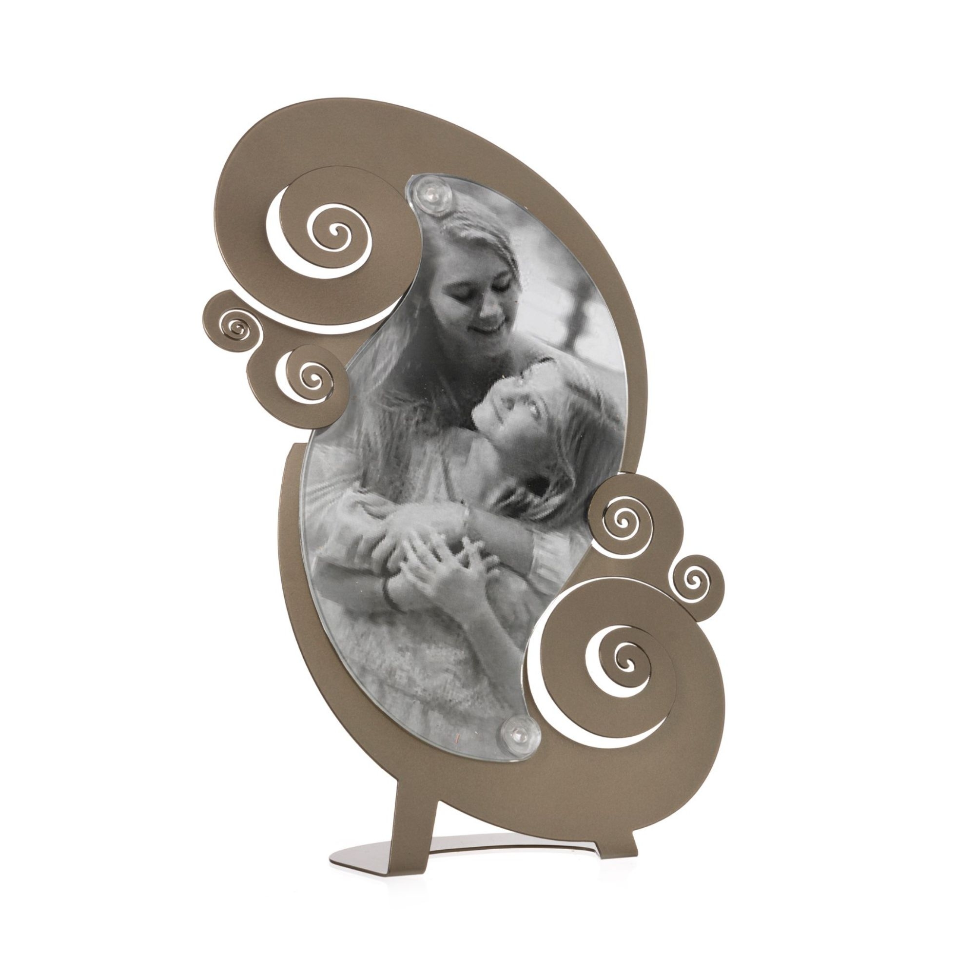 Porta foto Circeo realizzato in ferro. La cornice è abbellita da particolari riccioli sia sopra che sotto. Presenta delle linee eleganti e sinuoso, è disponibile in cinque splendide finiture colore. Porta foto Circeo in ferro è solido e decorativo e abbellirà le tue superfici vuote con i ricordi più belli. Realizzato da Arti e Mestieri.