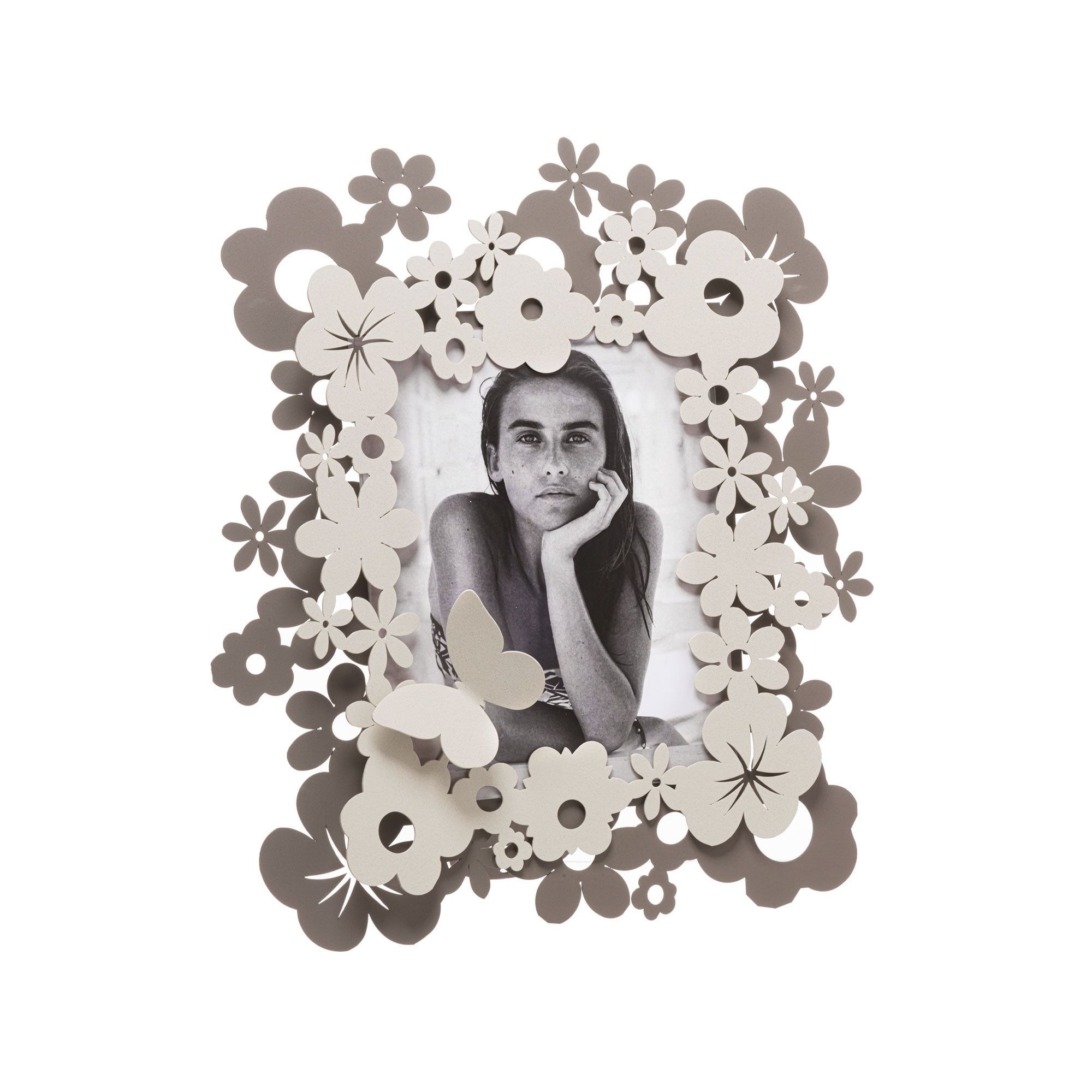 Porta foto Daisy piccolo realizzato in ferro. La cornice è abbellita da piccole margherite, da qui il nome. Le margherite danno un tocco di tridimensionalità al tuo arredamento. Porta foto Daisy in ferro è solido e decorativo e abbellirà le tue superfici vuote con i ricordi più belli. Realizzato da Arti e Mestieri.