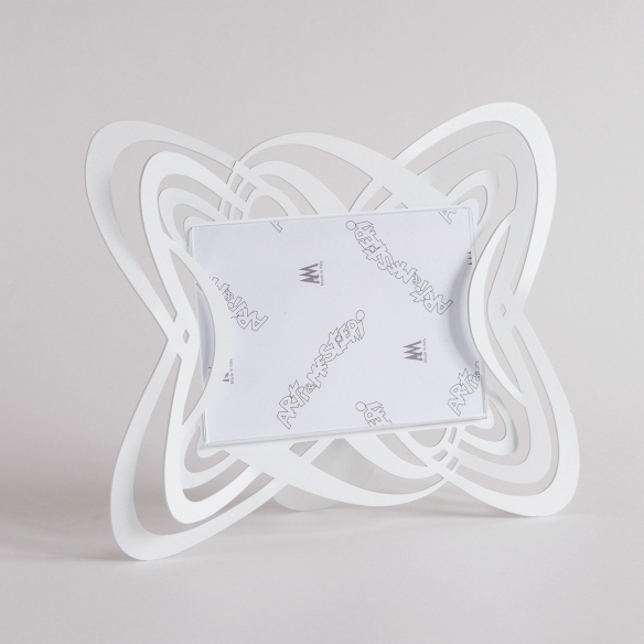 Porta foto Optical realizzato in ferro. La cornice si compone di linee sinuose e leggere che conferiscono grande dinamicità alle superfici in cui viene posto. Porta foto Optical in ferro è solido e decorativo e abbellirà le tue superfici vuote con i ricordi più belli. Realizzato da Arti e Mestieri.