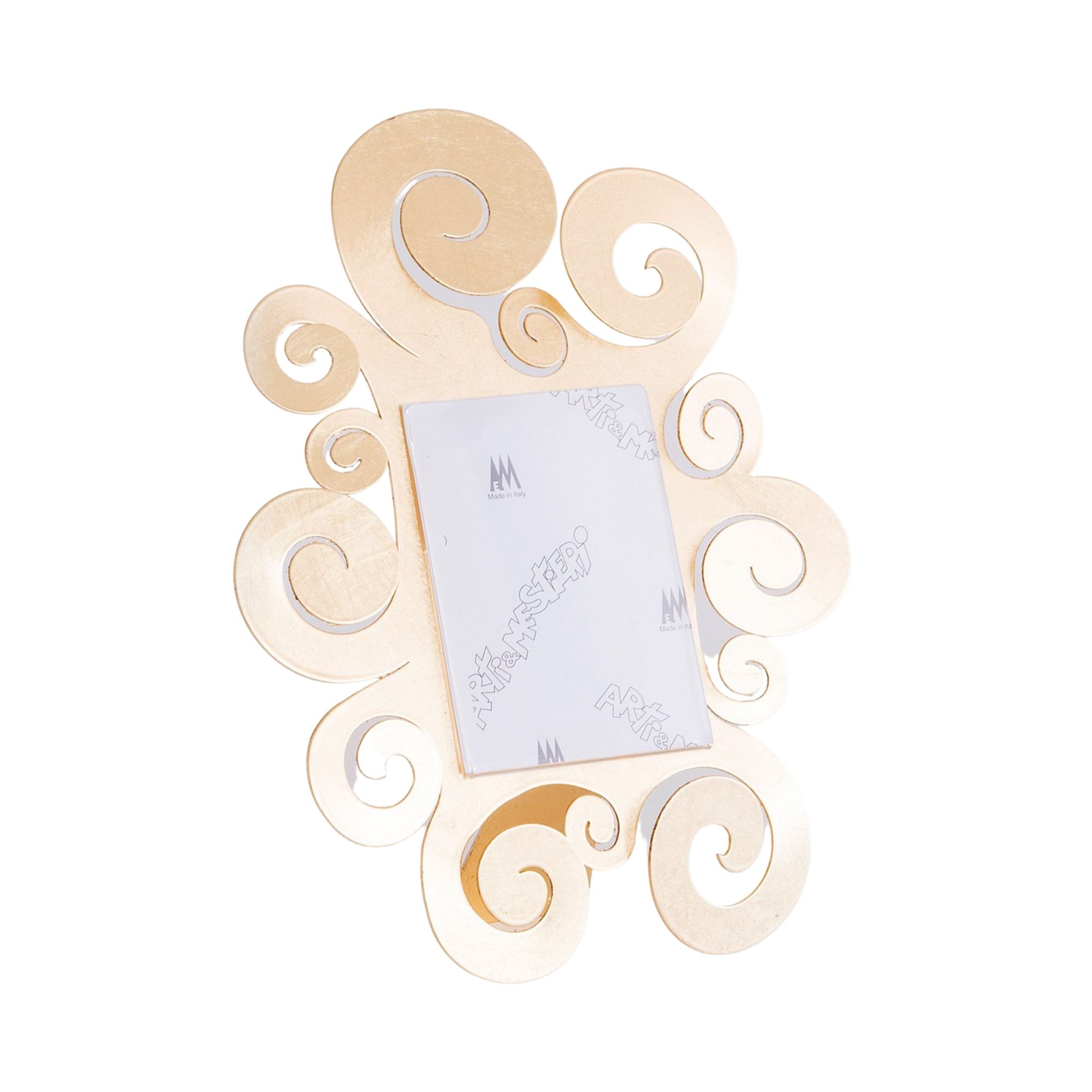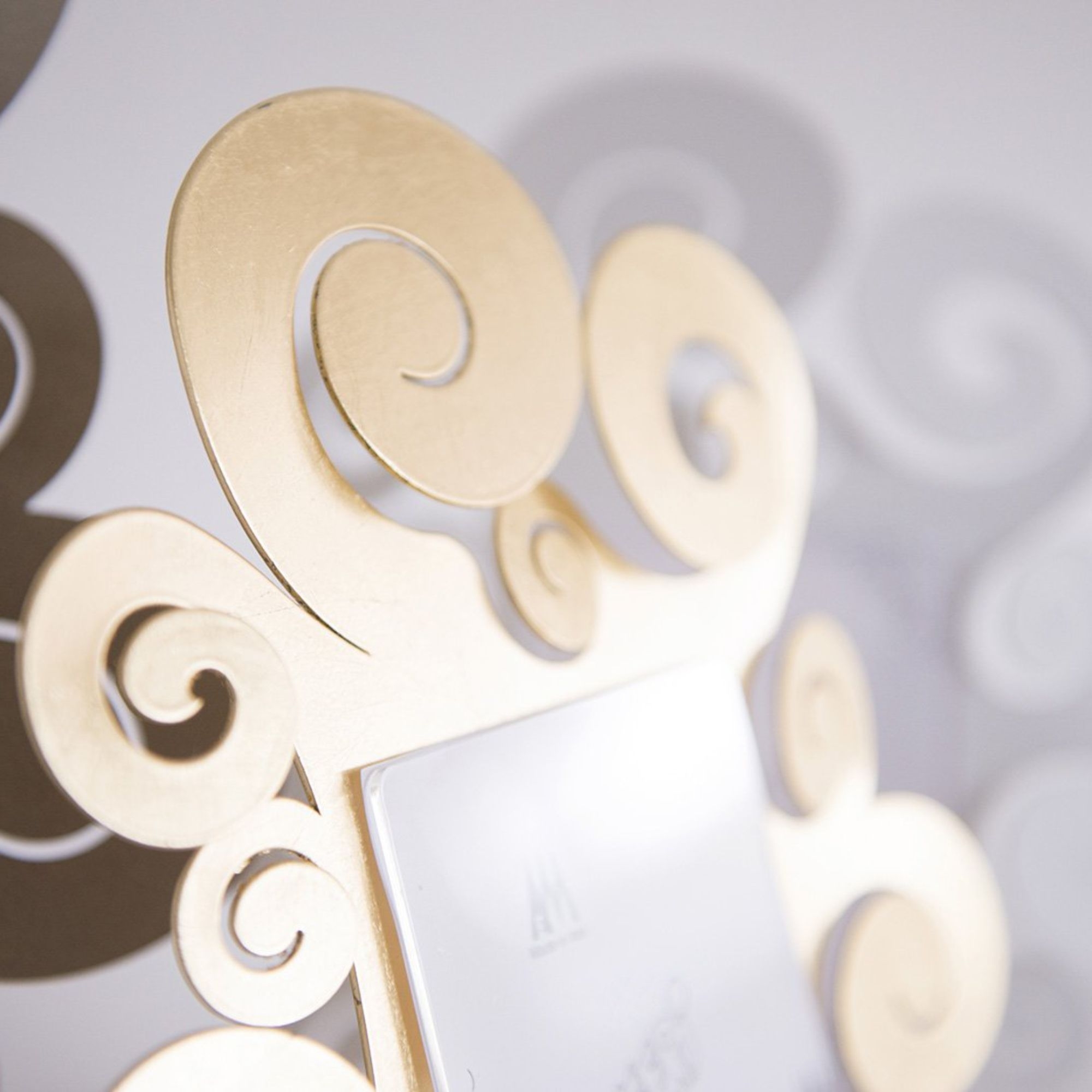 Porta foto Temple realizzato in ferro. La cornice si compone dei classici e originali riccioli che caratterizzano il brand. Porta foto Temple in ferro è solido e decorativo e abbellirà le tue superfici vuote con i ricordi più belli. Realizzato da Arti e Mestieri.
