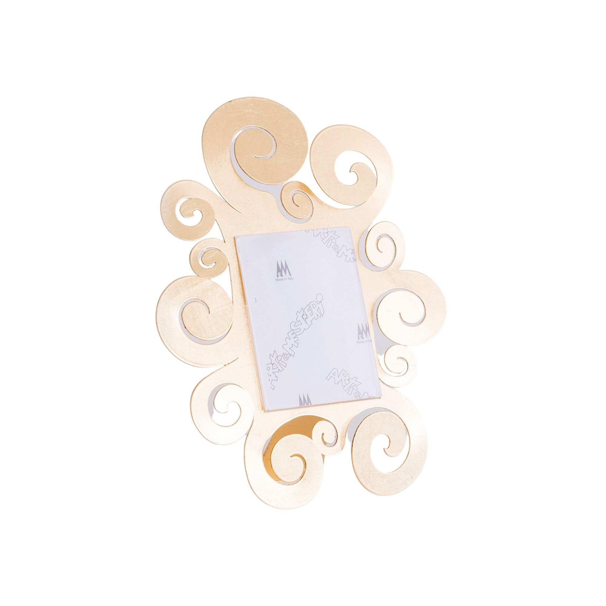 Porta foto Temple realizzato in ferro. La cornice si compone dei classici e originali riccioli che caratterizzano il brand. Porta foto Temple in ferro è solido e decorativo e abbellirà le tue superfici vuote con i ricordi più belli. Realizzato da Arti e Mestieri.