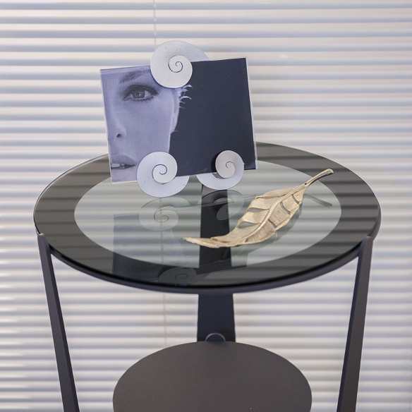 Porta foto Tip grande realizzato in ferro. La cornice si compone di tre grandi riccioli che sembrano delle onde. I riccioli in ferro sono il segno caratteristico del brand italiano. Porta foto Tip è solido e decorativo e abbellirà le tue superfici vuote con i ricordi più belli. Realizzato da Arti e Mestieri.