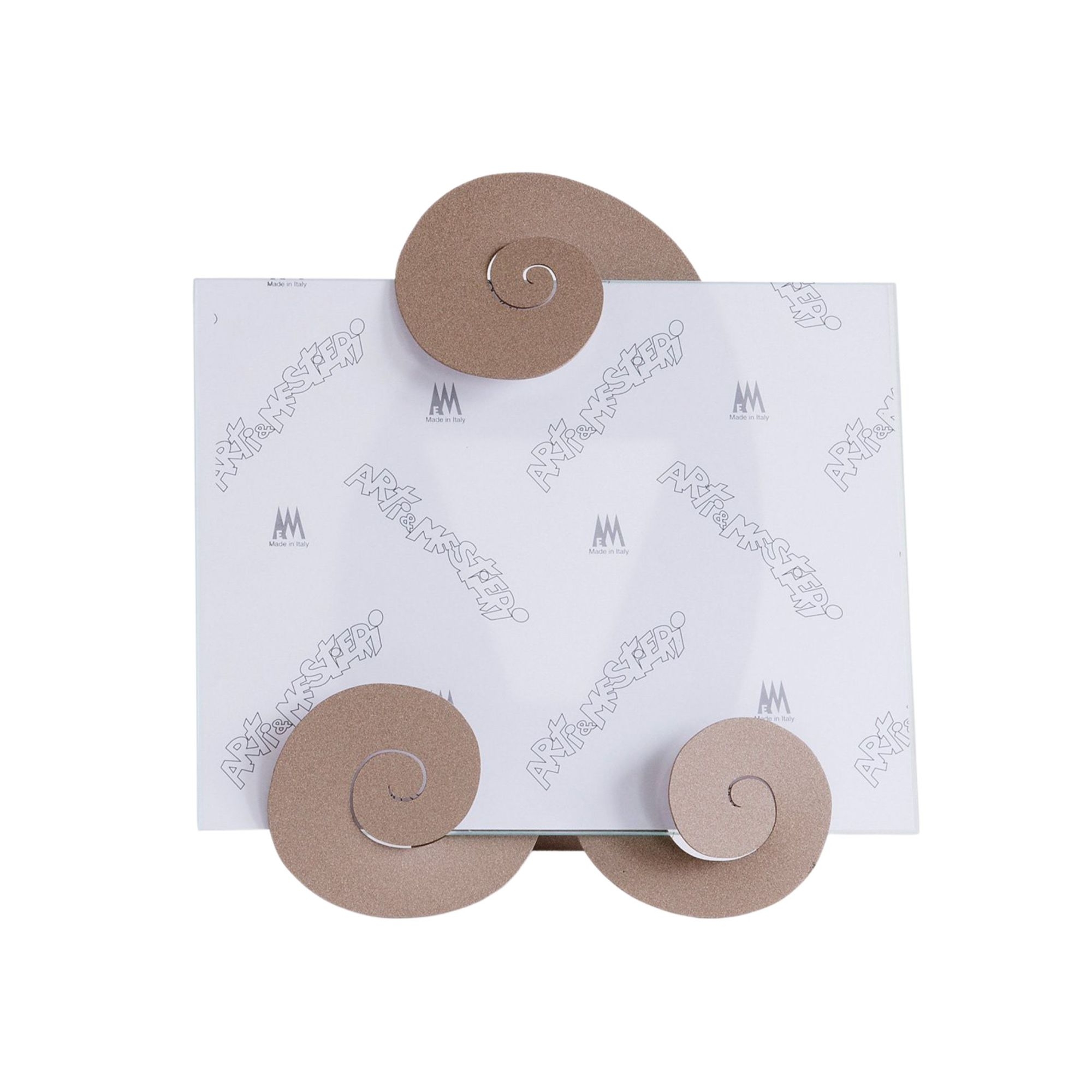 Porta foto Tip piccolo realizzato in ferro. La cornice si compone di tre grandi riccioli che sembrano delle onde. I riccioli in ferro sono il segno caratteristico del brand italiano. Porta foto Tip è solido e decorativo e abbellirà le tue superfici vuote con i ricordi più belli. Realizzato da Arti e Mestieri.