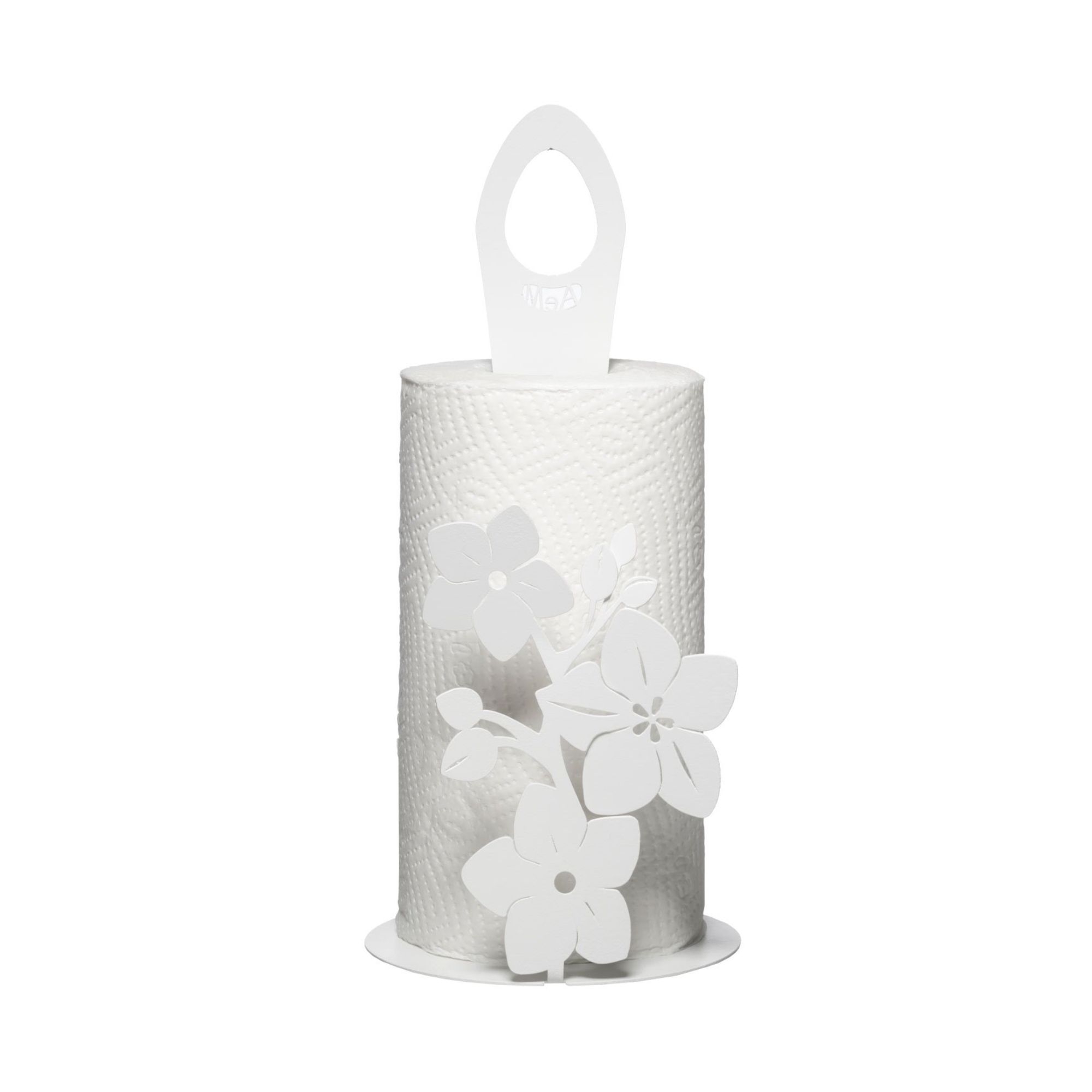 Porta rotolo Fior di Loto realizzato in ferro con manico porta scottex e struttura con fiori. Pratico e funzionale è disponibile in tre colori. Il ferro è il materiale di punta del brand che viene tagliato a laser per mescolarsi con i colori e restituire un mood leggero e contemporaneo. Realizzato da Arti e Mestieri.