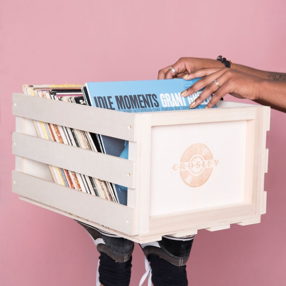 Contenitore per vinili realizzato in legno. È comodo per poggiare i tuoi vinili preferiti. È robusto e marchiato con il marchio Crosley sul davanti. Si possono conservare 40 album. Realizzato da Crosley.
