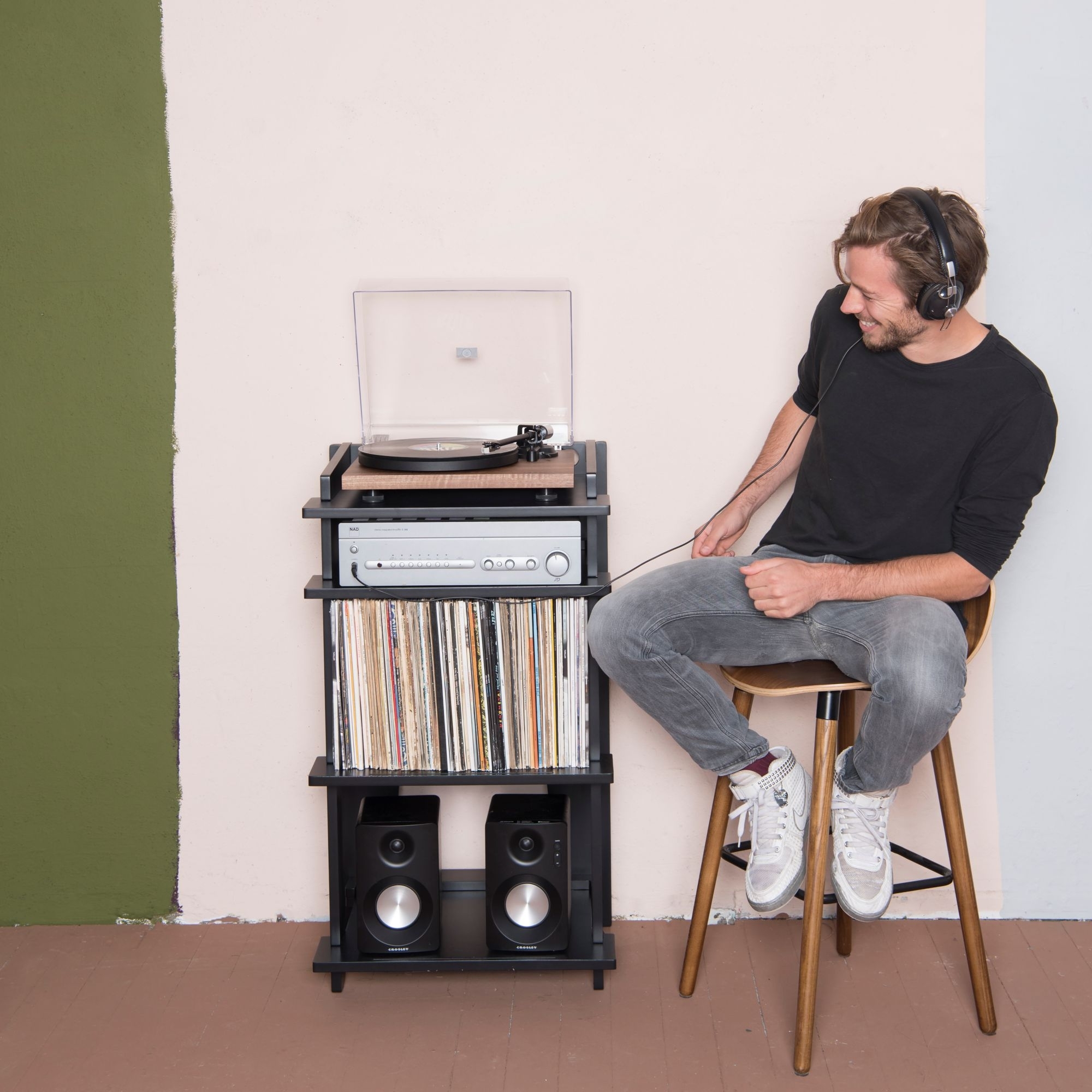 Il Soho di Crosley è il supporto per giradischi definitivo per gli amanti della musica. Il ripiano superiore si adatta alla maggior parte dei giradischi in stile componente e presenta due fori per la gestione dei cavi per mantenere in ordine il tuo set. Il secondo ripiano è perfetto per i tuoi accessori: preamplificatore, mini amplificatore, prodotti per la pulizia, ecc. e presenta altri due fori per la gestione dei cavi. I due ripiani inferiori possono contenere fino a 100 dischi ciascuno e sono dotati di paraurti nella parte posteriore per garantire che i dischi siano uniformi e siano facilmente accessibili. Poiché i dettagli contano, ci sono due scanalature per mostrare la copertina del disco che sta girando e spazio sotto il ripiano inferiore per tenere i tuoi dischi lontani dal vero nemico: sporco e polvere. Siamo fiduciosi che il supporto per giradischi Soho sia la soluzione più ponderata e conveniente sul mercato. Scegli il mobiletto Soho e scopri gli altri prodotti di Crosley qui, su Newpop.it!