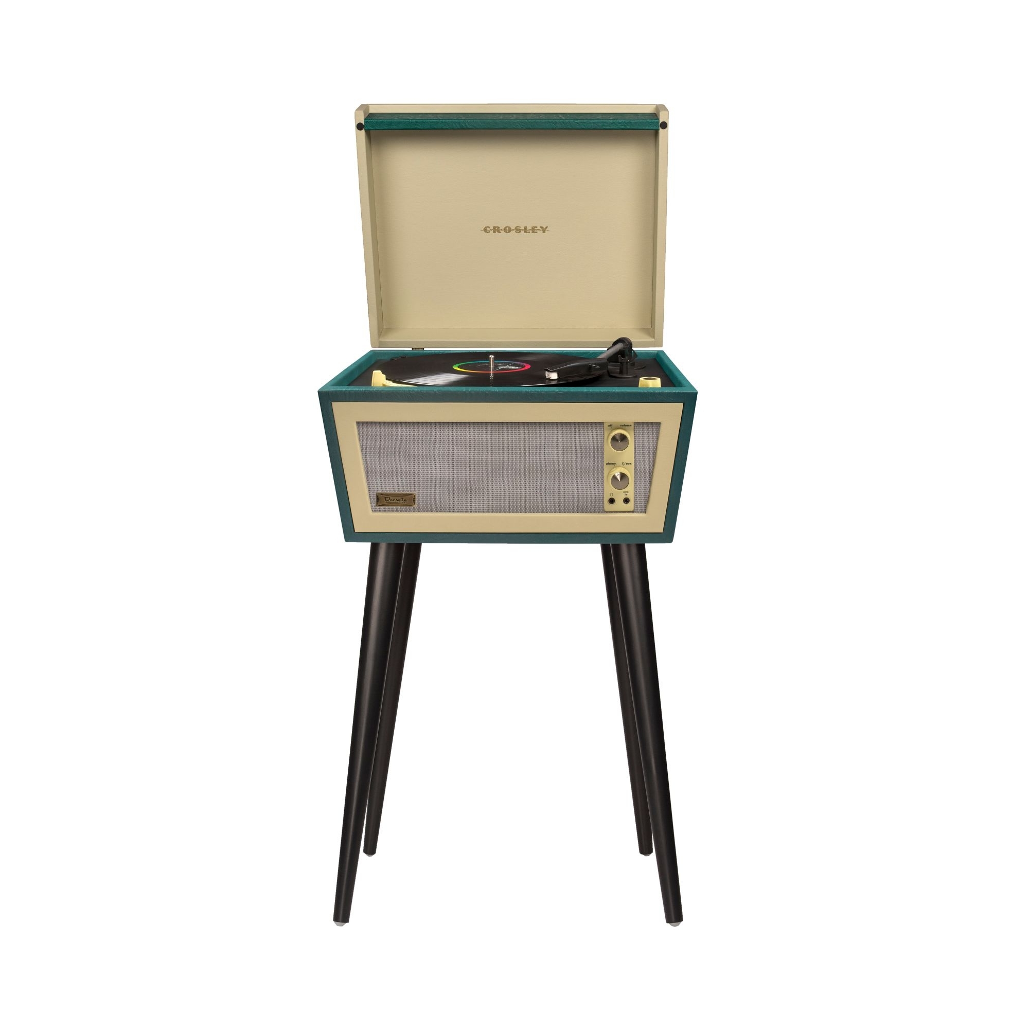 Giradischi Sterling realizzato con struttura il legno. Sterling è dotato di amplificatori full rang stereo, cavi jack aux-in e aux-out, Bluetooth per ascoltare la musica da altri dispositivi e la possibilità di inserire le cuffie per l’ascolto. Inoltre, l’uscita RCA permette di collegarvi casse esterne. Le gambe si possono smontare per trasformarle in una pratica valigetta. Realizzato da Crosley.