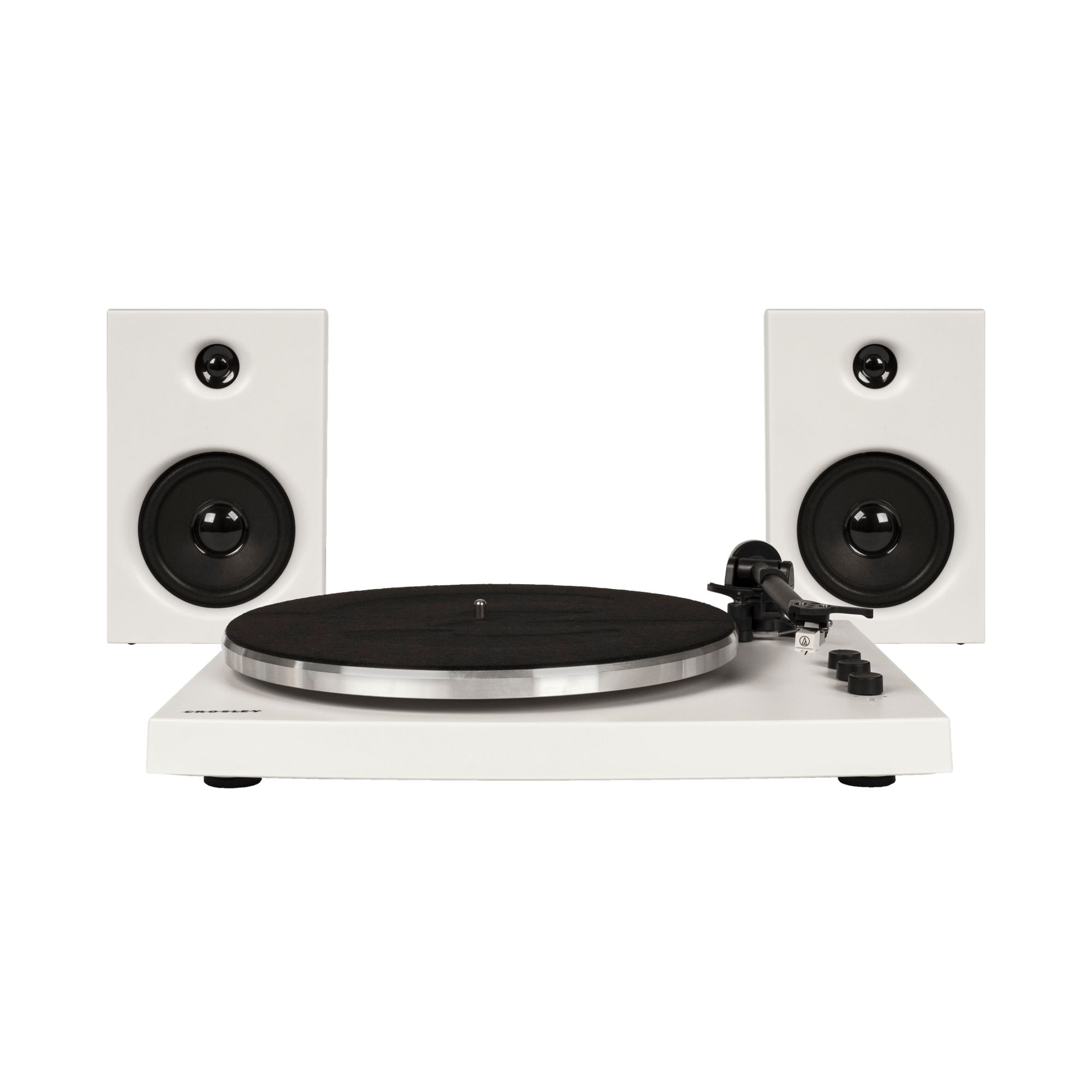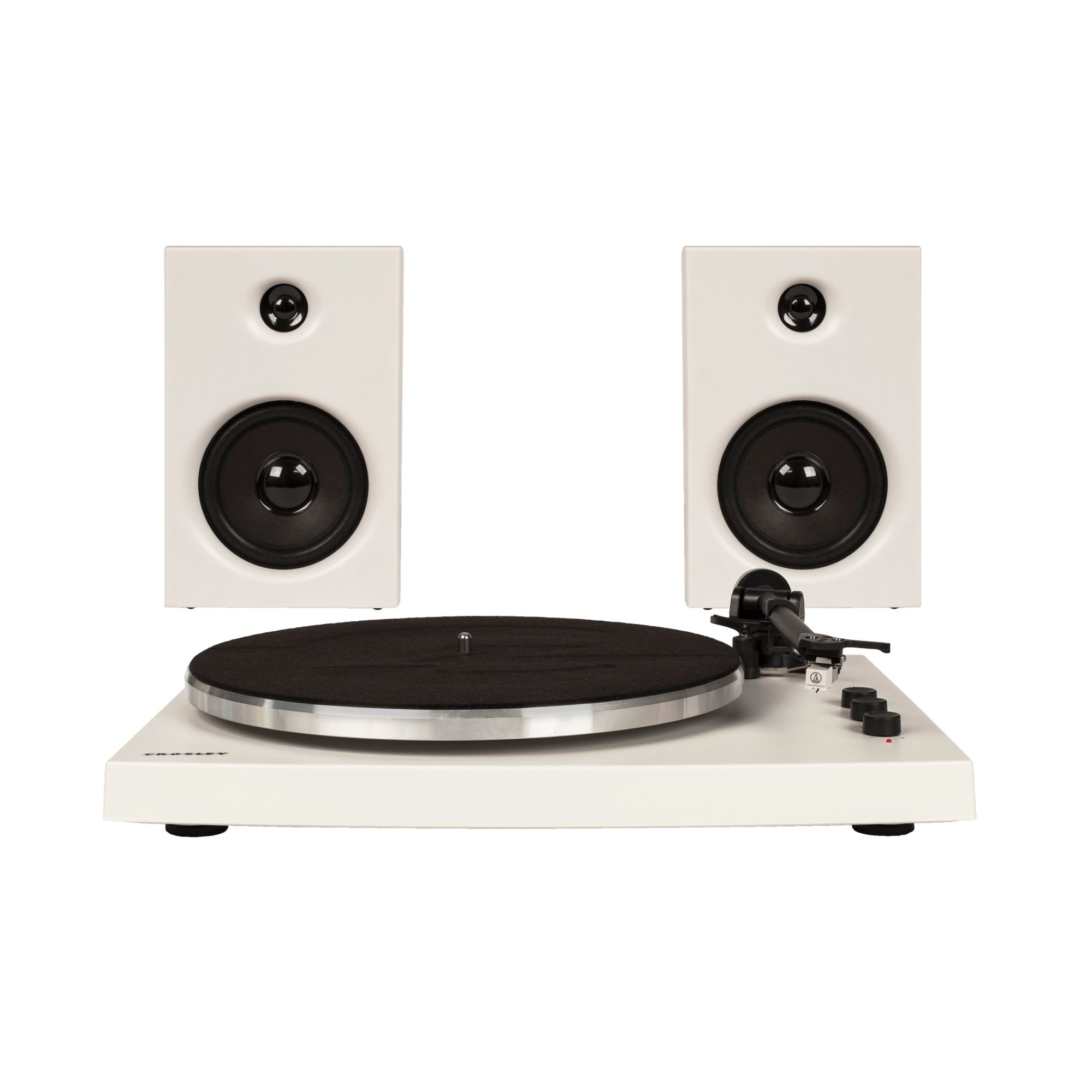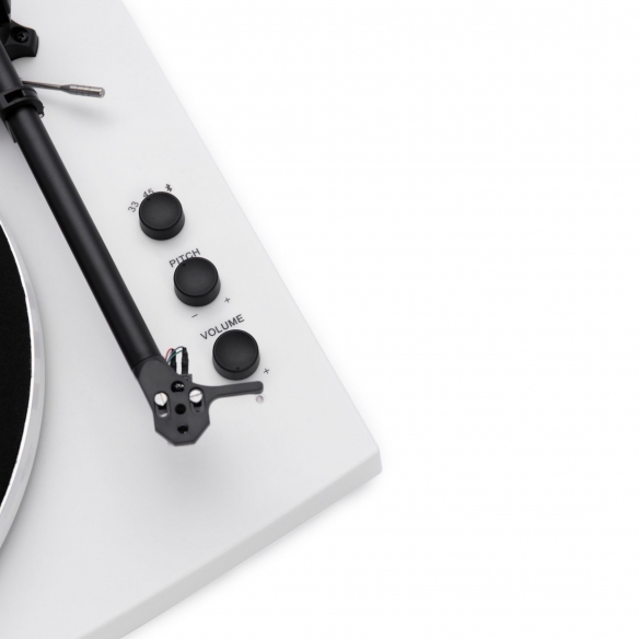 Giradischi T150 realizzato in alluminio e metallo. È completa di piatto, amplificatore e speaker, a due velocità con braccio regolabile e amplificatore integrato da 30W. L’aggiornamento più florido è quella della puntina di qualità professionale Audio Technica. Questo giradischi retrò viene fornito con 2 diverse velocità di riproduzione, 33 1/3 e 45 RPM, e può con l'adattatore in dotazione anche per giocare singolarmente. T150 è semplicemente perfetto! Realizzato da Crosley.