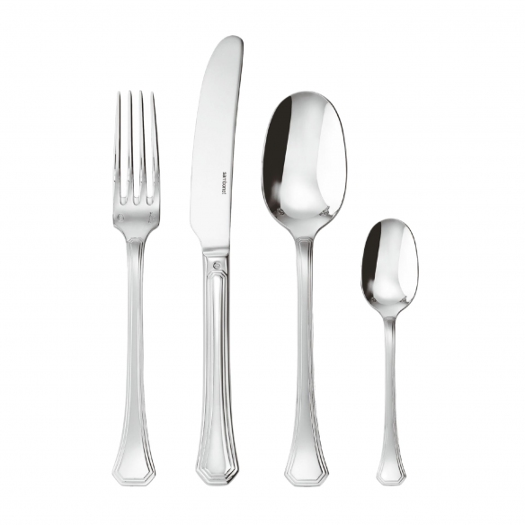 Servizio di 24 posate, appartenente alla collezione Decò, realizzato in acciaio inossidabile. Il servizio Decò comprende: