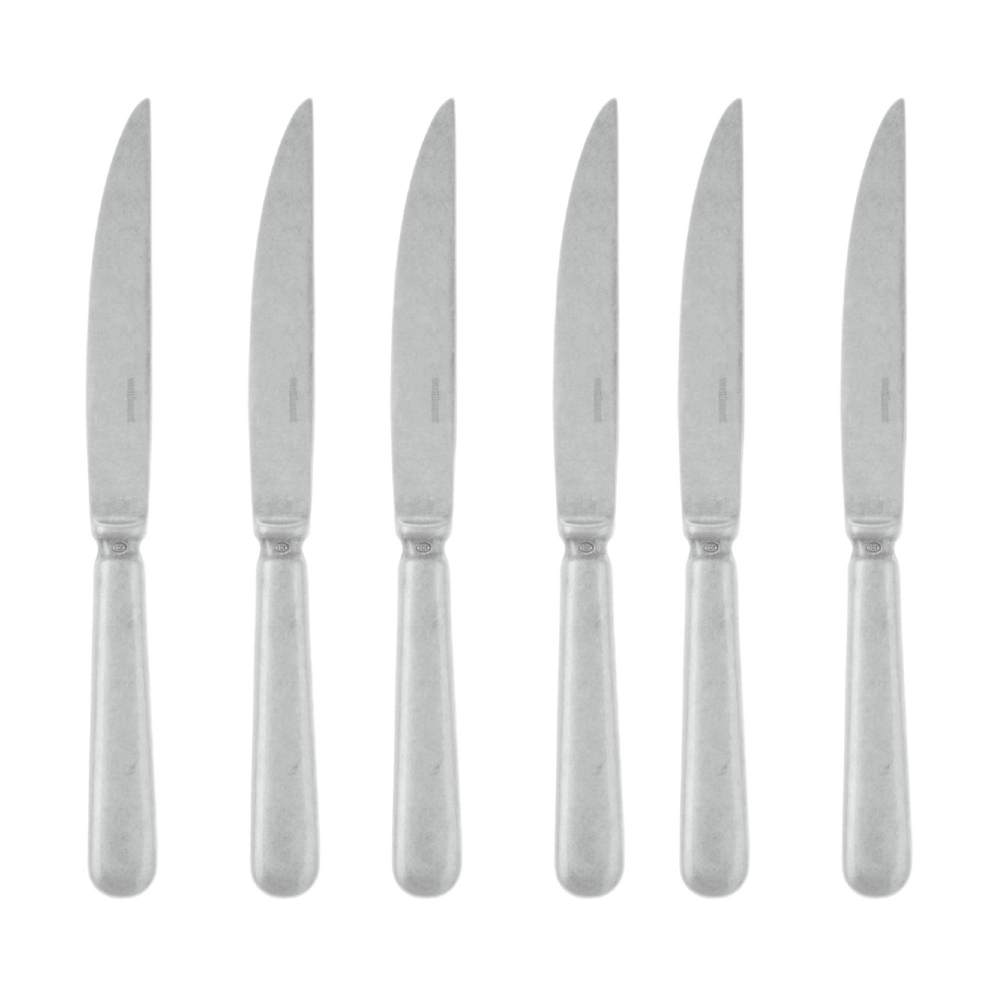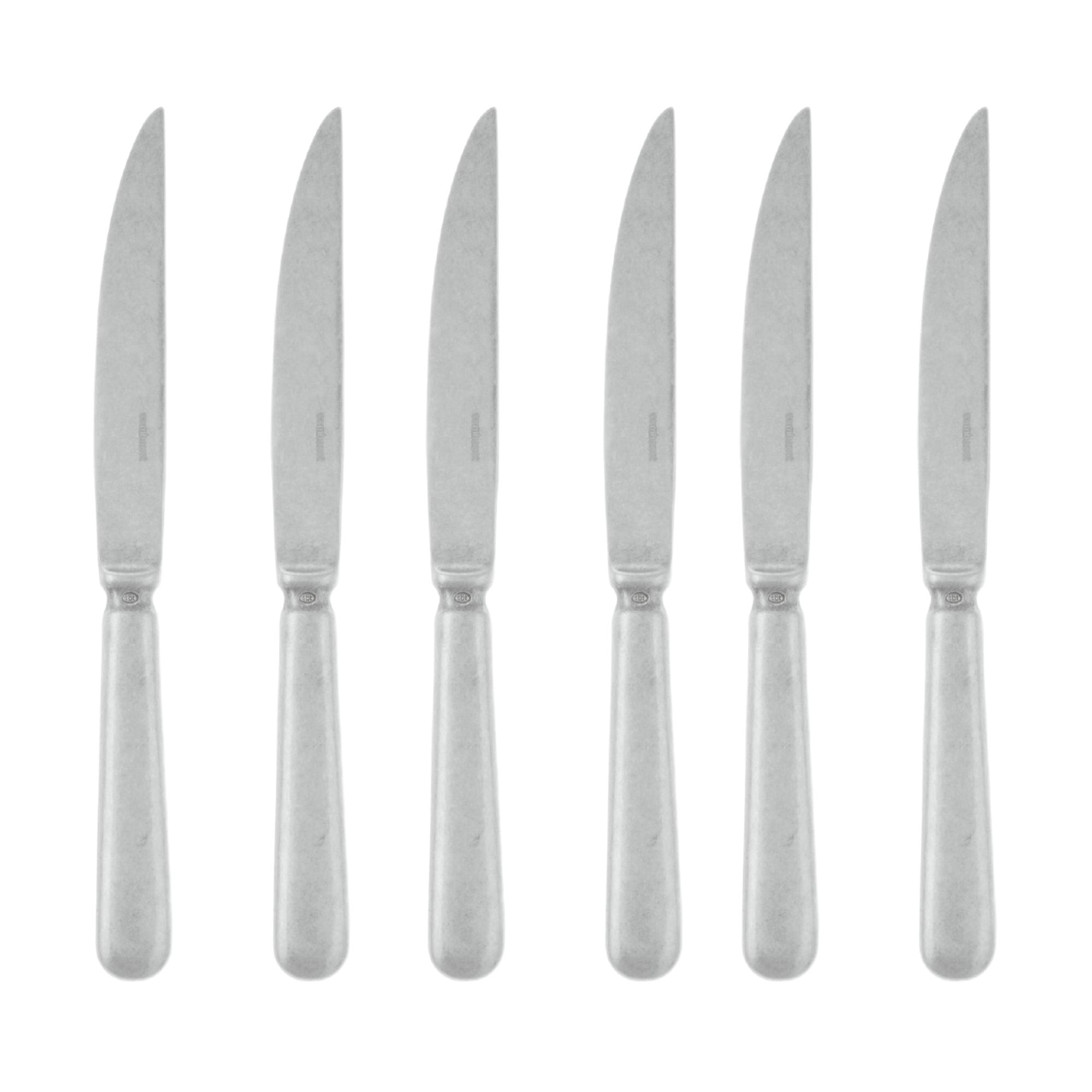 6 coltelli per bistecca Baguette, realizzati in acciaio inossidabile. Disponibili in acciaio lucido o in acciaio vintage, i coltelli per bistecca Baguette hanno un manico maneggevole ed ergonomico, che garantisce un'ottima presa ed estrema resistenza. Perfetti per tagliare la carne in modo preciso e senza sfilettarla, i coltelli per bistecca Baguette porteranno stile e funzionalità alla tua tavola! Progettati e realizzati da Sambonet.