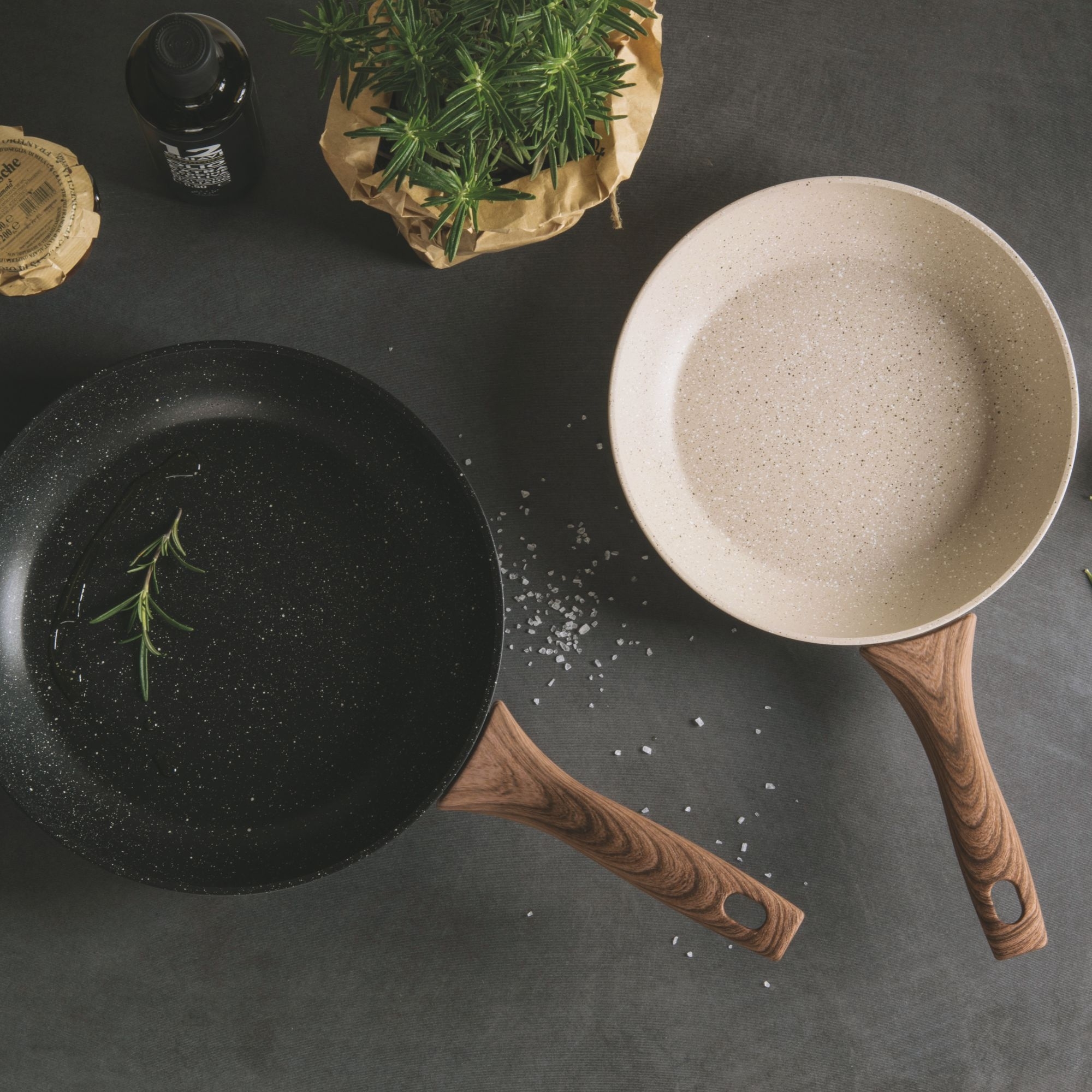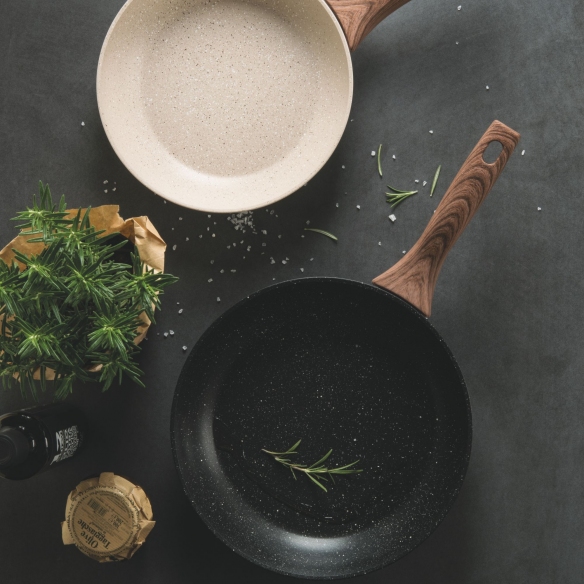 Padella dal diametro di 28 cm, appartenente alla collezione Rock 'N' Rose, realizzata in alluminio, con rivestimento antiaderente a cinque strati. Disponibile in due eleganti finiture di colore (nero e soft rose), la padella Rock 'N' Rose si contraddistingue per il design semplice e compatto, arricchito dall'affascinante trama effetto pietra del rivestimento esterno. Il manico è ergonomico e soft touch, ed è caratterizzato da un'elegante finitura in legno. Ideale sia per cotture lente che a fiamma alta, la padella Rock 'N' Rose ti garantisce performance professionali! Adatta anche per cotture a induzione. Progettata e realizzata da Sambonet.