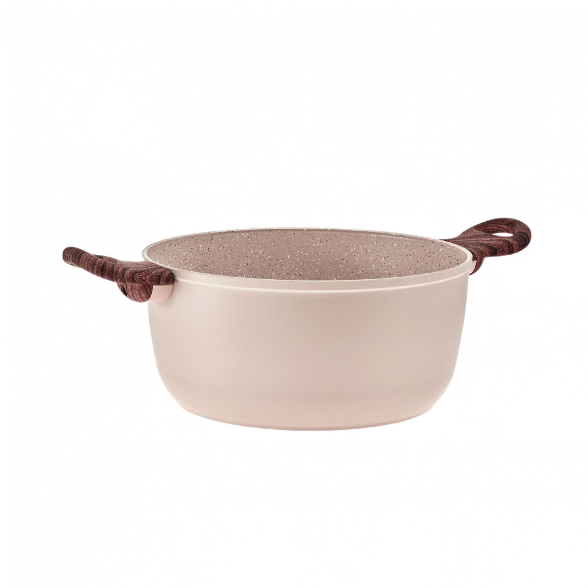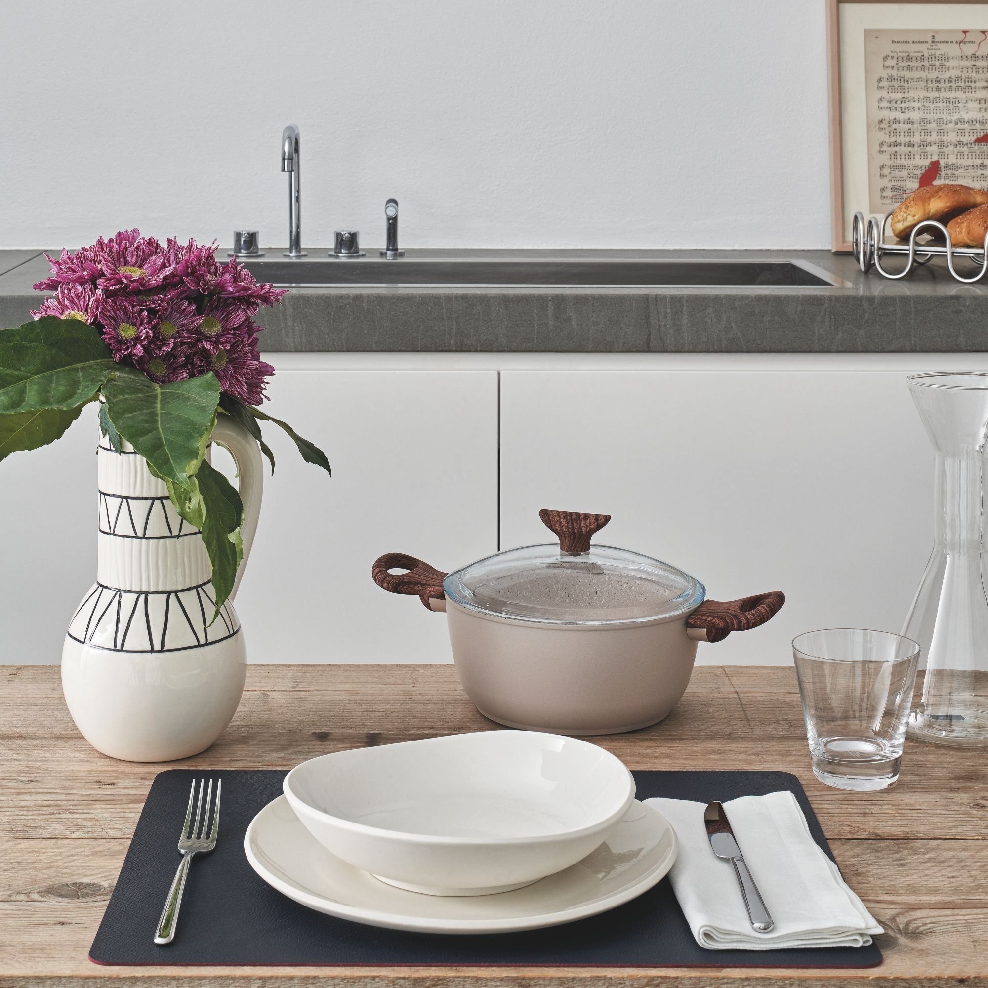 Casseruola alta a due manici dal diametro di 24 cm, appartenente alla collezione Rock 'N' Rose, realizzata in alluminio con rivestimento antiaderente a 5 strati e coperchio in vetro. Disponibile in due eleganti finiture di colore (nero e soft rose), la casseruola Rock 'N' Rose si contraddistingue per il design semplice e compatto, arricchito dall'affascinante trama effetto pietra del rivestimento esterno. I manici sono ergonomici e soft touch, e sono caratterizzati da un'elegante finitura in legno. Ideale sia per cotture lente che a fiamma alta, la casseruola Rock 'N' Rose ti garantisce performance professionali! Adatta anche per cotture a induzione. Progettata e realizzata da Sambonet.