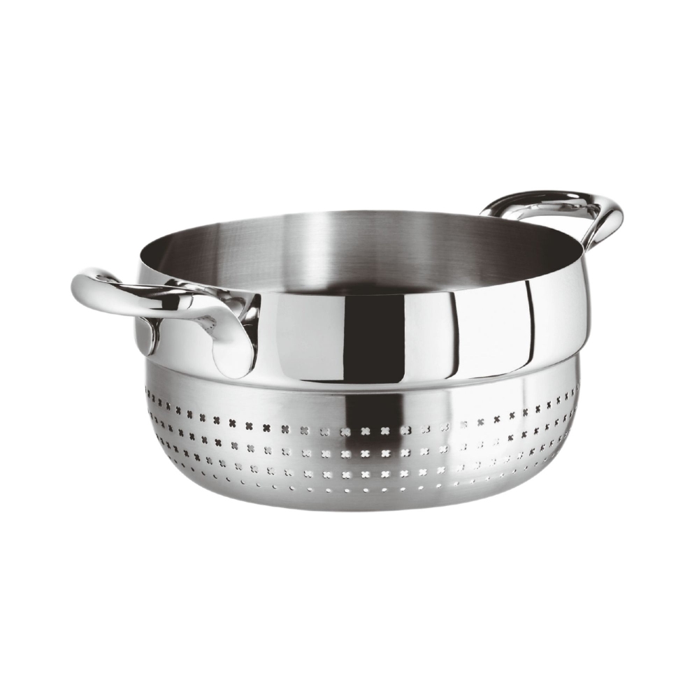 Vaporiera dal diametro di 24 cm, appartenente alla collezione Kikka, realizzata in acciaio inossidabile 18/10. Ideale per cuocere cibi sani e leggeri, mantenendo inalterate le proprietà nutritive, la vaporiera Kikka ti permetterà di cuocere al vapore pesce, carni, verdure o legumi, o può essere utilizzato per scongelare in modo rapido. Caratterizzata da un design semplice ma accattivante, il cuocivapore Kikka è un accessorio immancabile nella tua cucina! Progettato e realizzato da Sambonet.